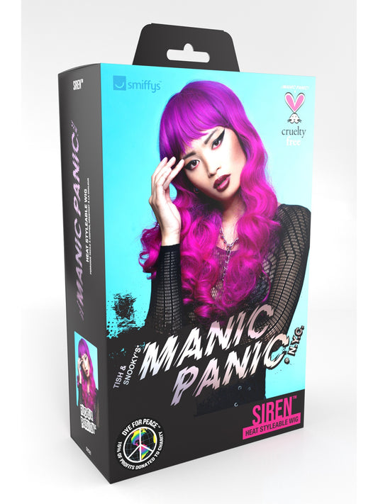 Manic Panic is the outrageously wild brainchild of two New York City rock and roll sisters, Tish and Snooky Bellomo and has been setting trends and providing inspiration to the beauty and fashion industries for over 43 years. Smiffys have partnered with Manic Panic and created 8 styles in 29 colourways, coloured using the techniques and styles that epitomise Manic Panic. The collection includes a wide variety of wig styles for those wanting to change up their look with vivid colour in varying lengths. All styles are synthetic, vegan, and heat styleable - wear as you dare! #manicpanicwigs”