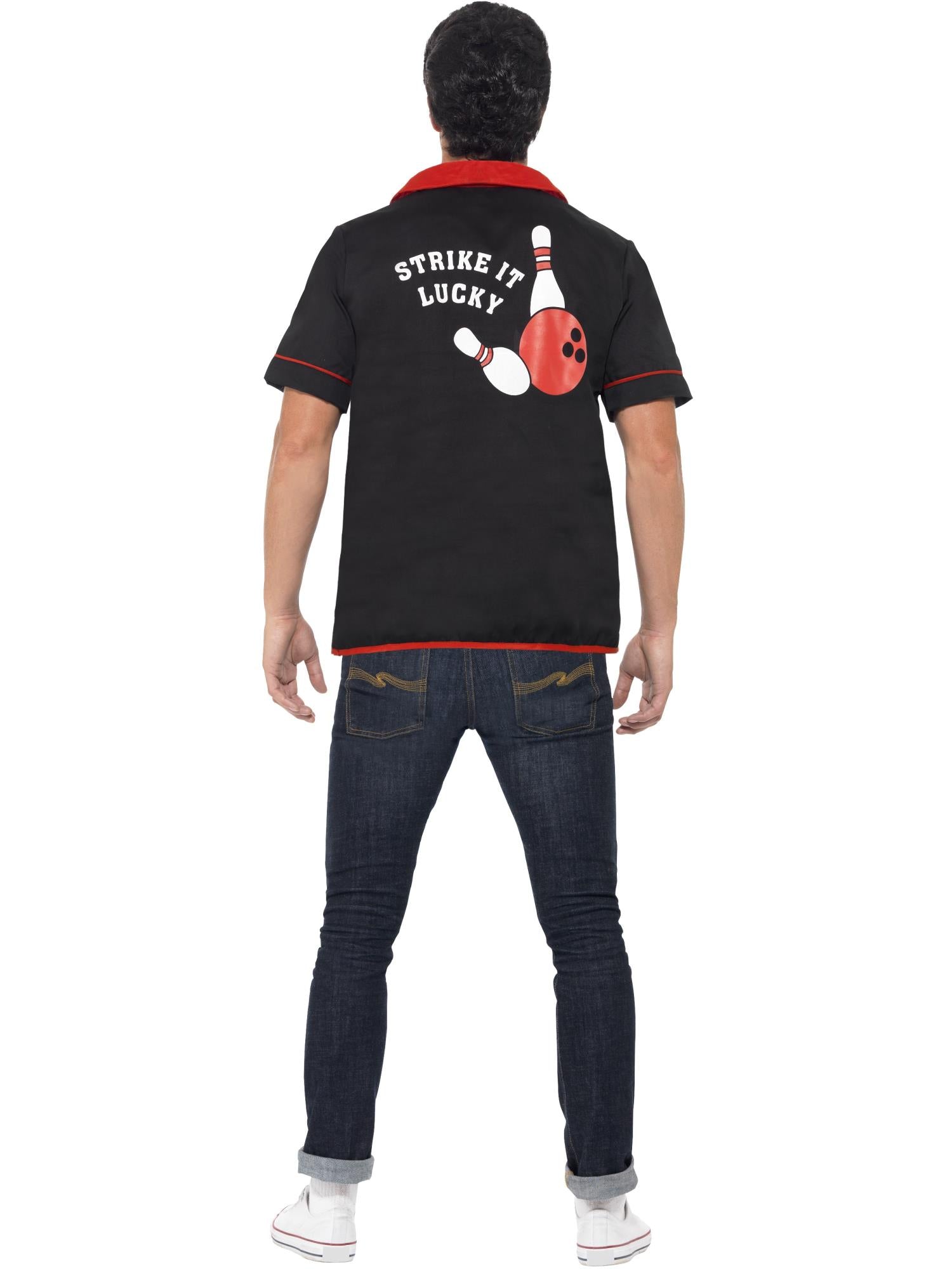 Transform into a fifties heartthrob in the Smiffys 50's Bowling Shirt. The black shirt is complete with Strike It Lucky motifs, simply add to a pair of jeans and trainers and you're good to go!.