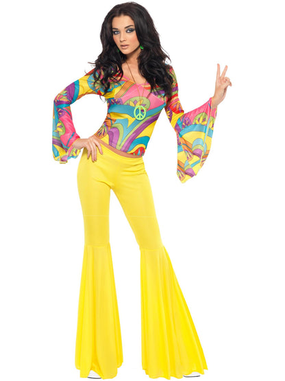 70s Groovy Babe Costume, Yellow, with Top and Flared Trousers