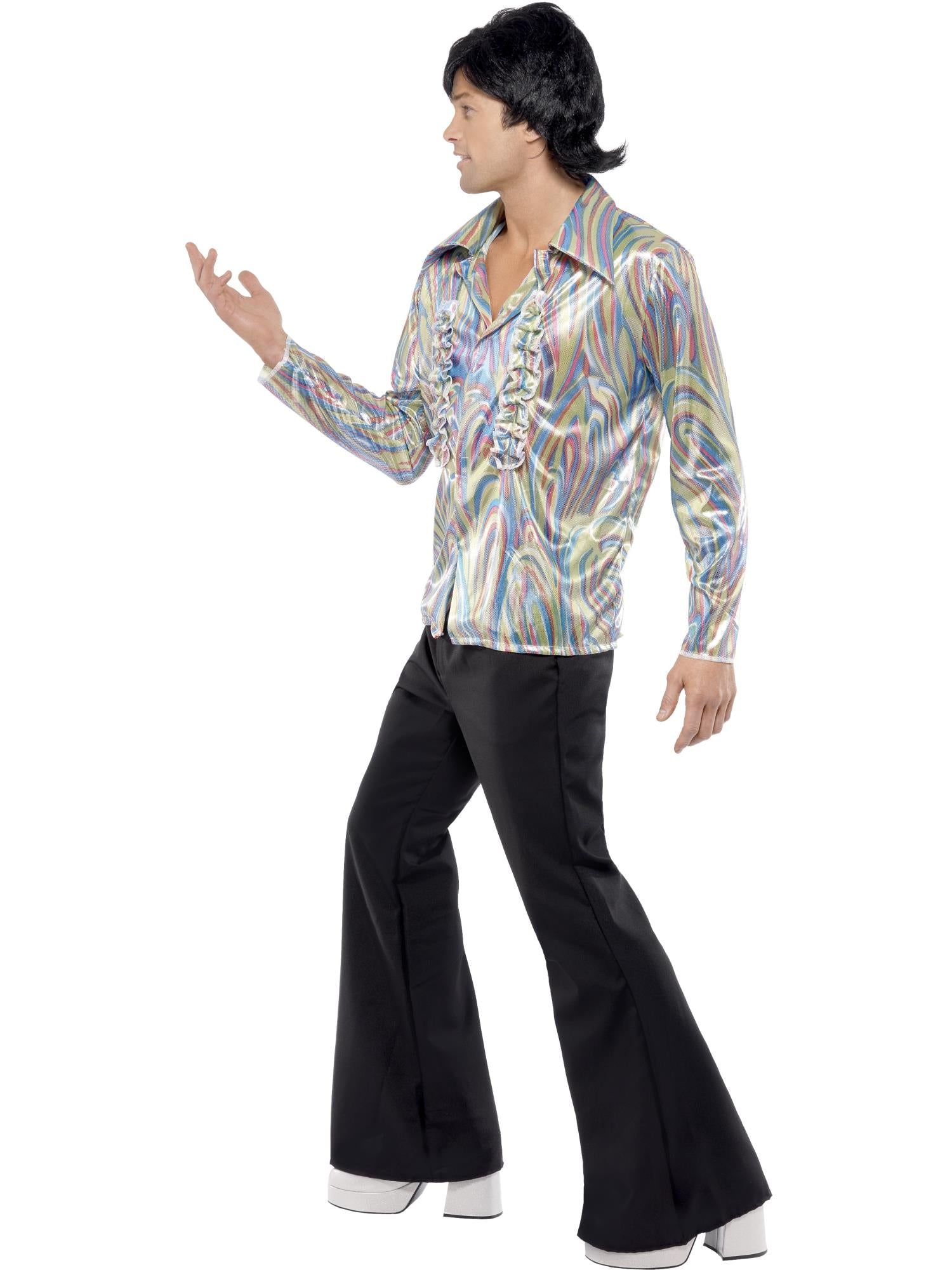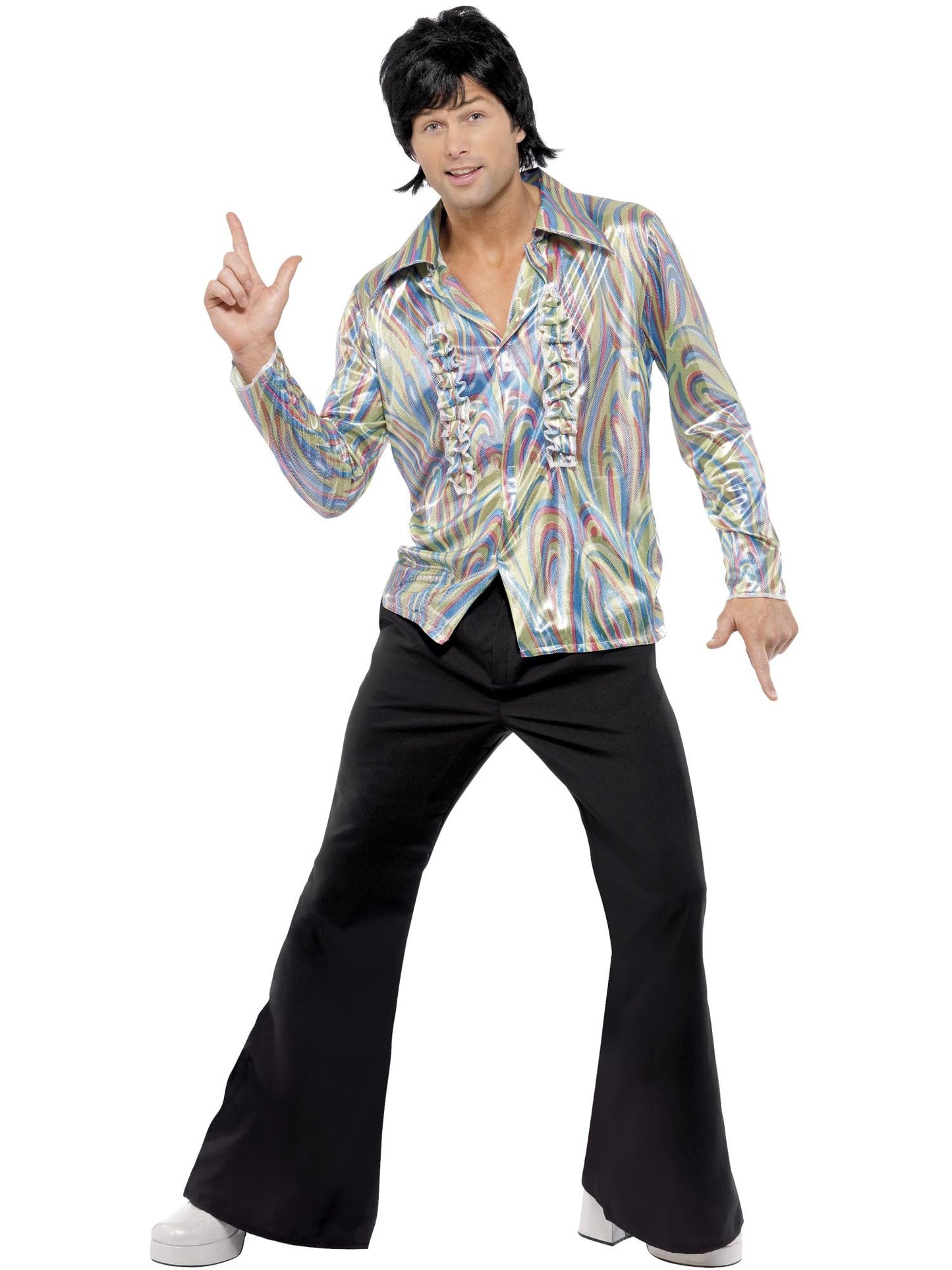 Embrace the dance diva inside with the 70S Retro Costume. This male seventies fancy dress costume includes a shirt and flares. Complete the look with our 70s Shag Wig.