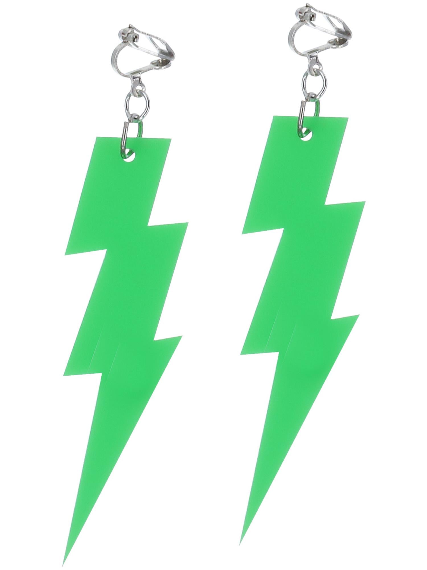 80s Neon Lightning Bolt Earrings, Green