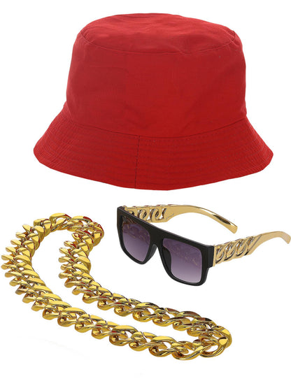 90s Hip Hop Kit, Red Bucket Hat, Chain Specs, Necklace