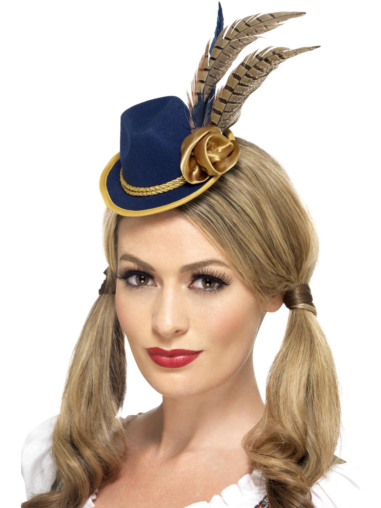 Authentic Bavarian Festival Mini Hat, Blue, with Feather