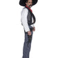 Aribbaaa banditos! Be the good guy in our Men's Authentic Western Mexican bandit fancy dress costume which comes with a white buttoned shirt, a grey over lay sleeveless waistcoat, blue and white pinstriped trousers and a western red neck scarf. Please Note: Costume only comes in a Medium Men's size.