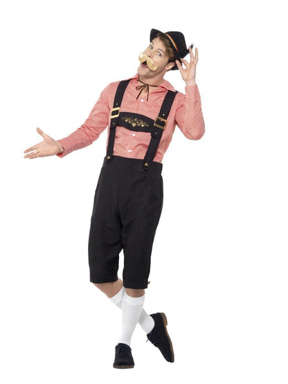 Bavarian Beer Guy Costume, Red, with Shirt & Mock Suede Lederhosen