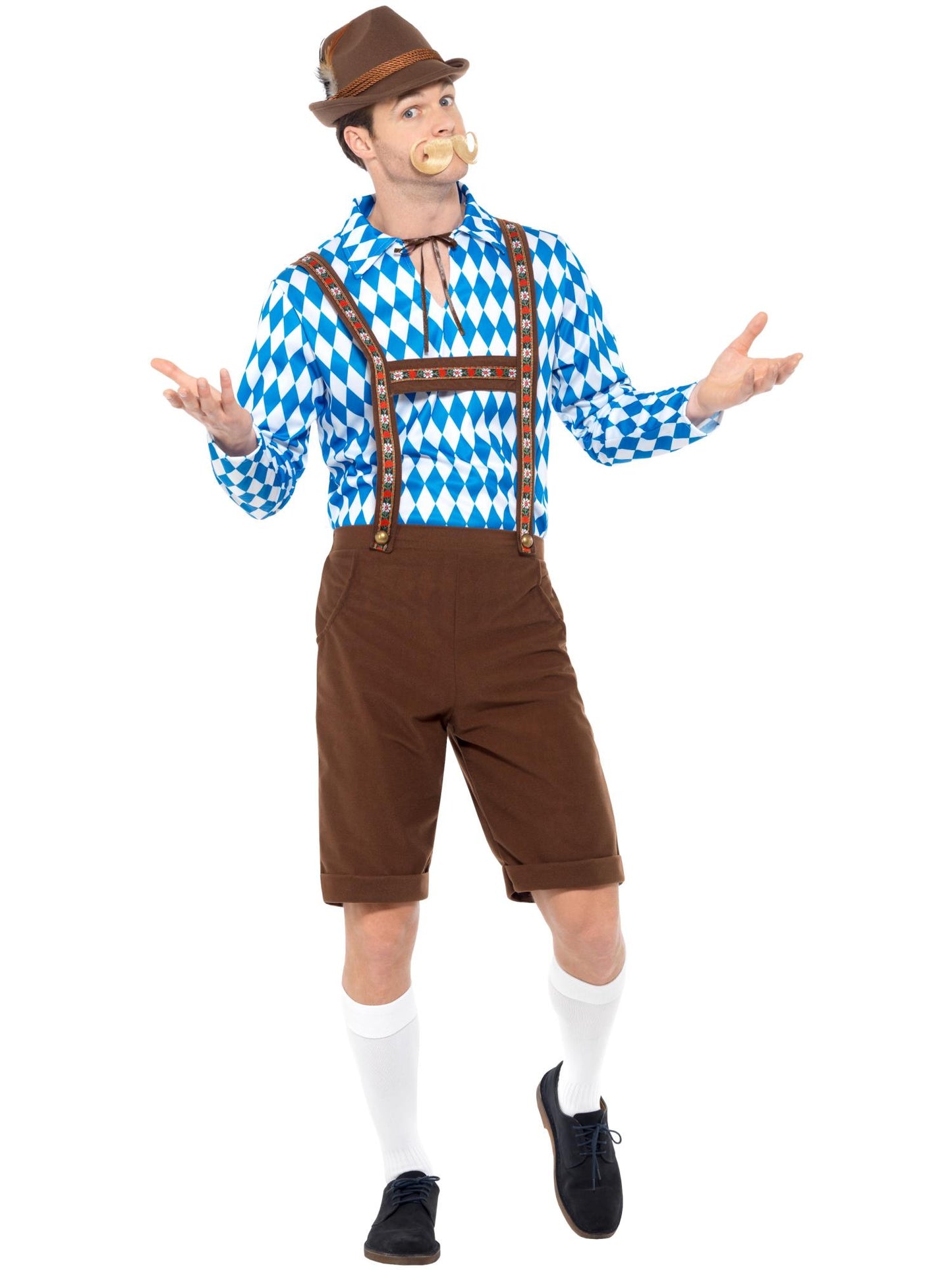 Bavarian Beer Man Costume, Blue & Brown, with Shirt & Lederhosen.