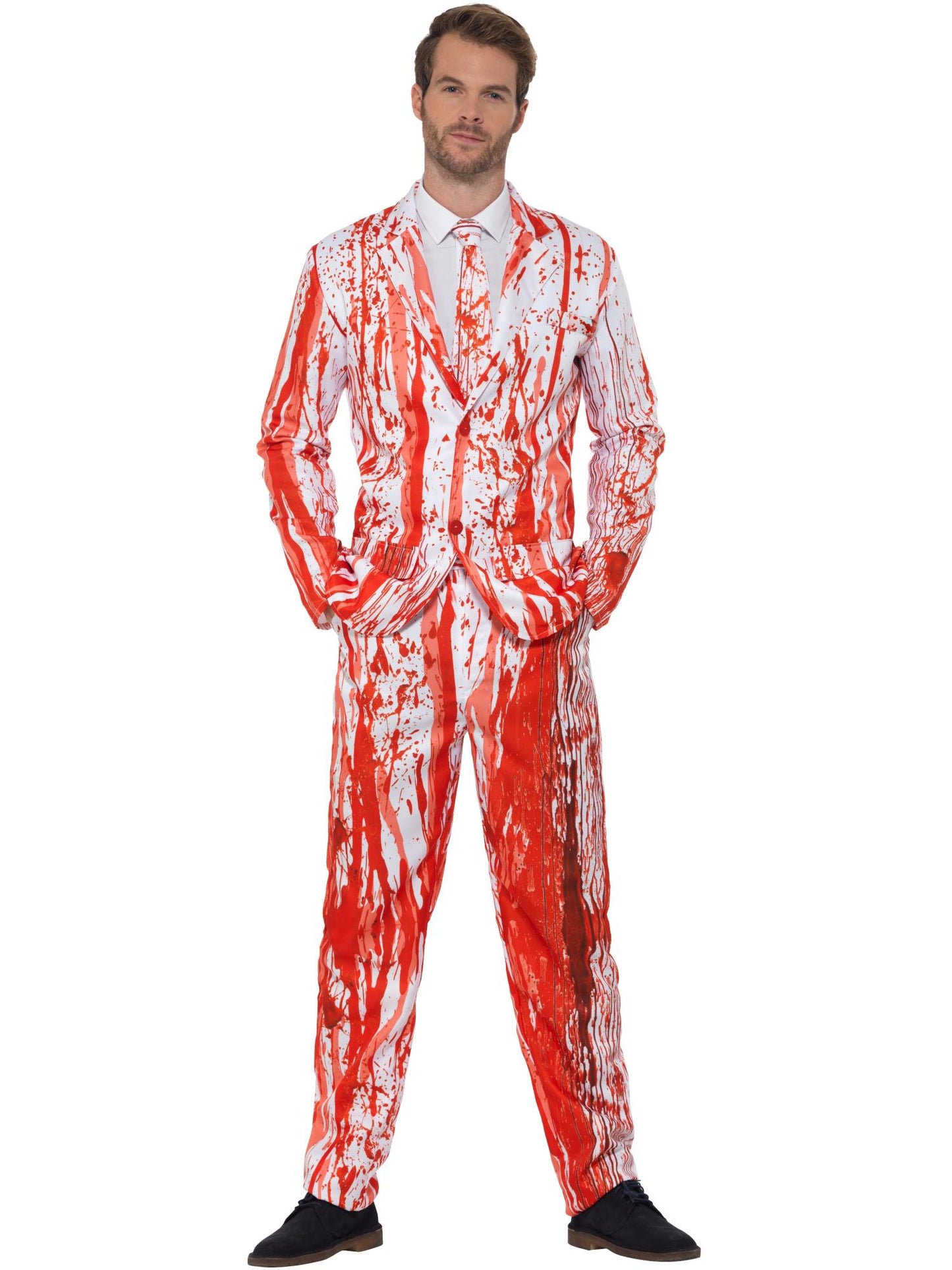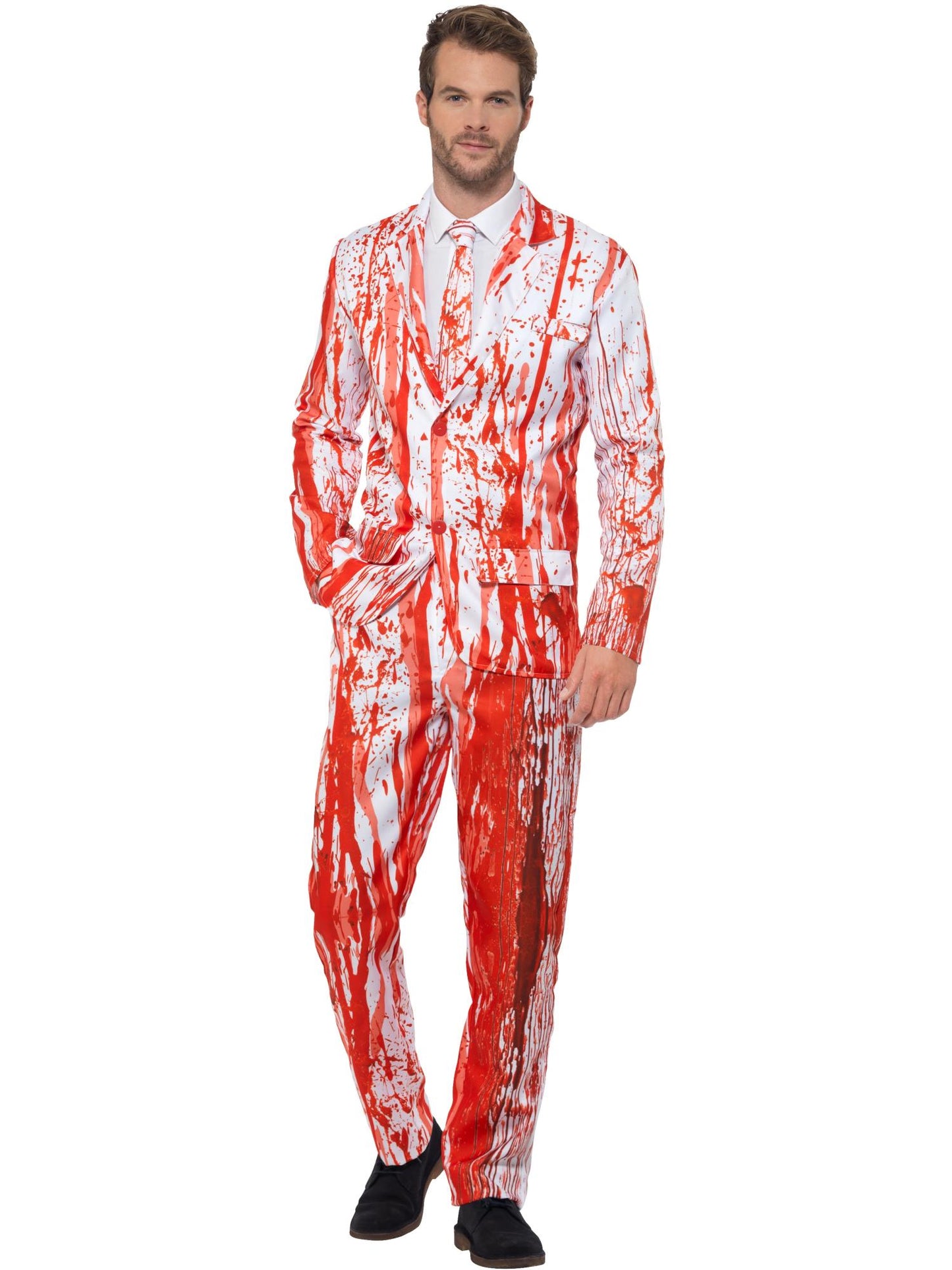 Men's Blood Drip Suit, Red, with Jacket, Trousers & Tie.