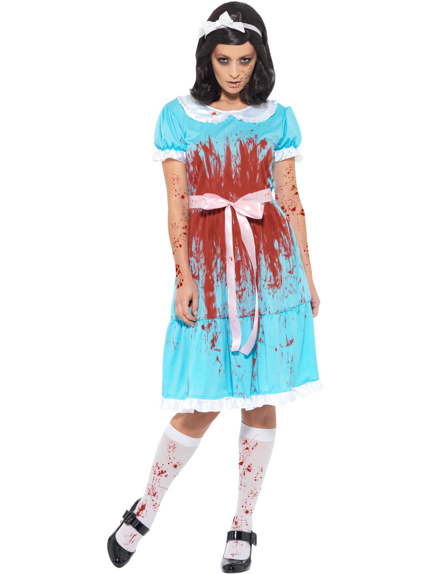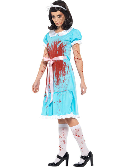 Bloody Murderous Twin Costume, Blue, with Dress, Socks & Headband.