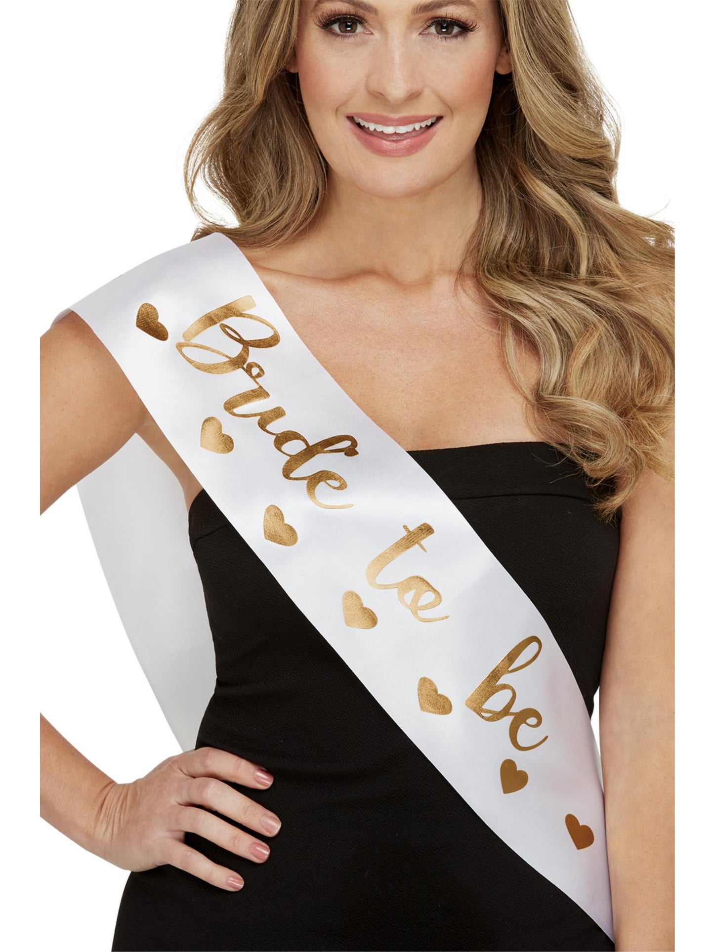 Bride to Be Sash, White, with Gold Lettering