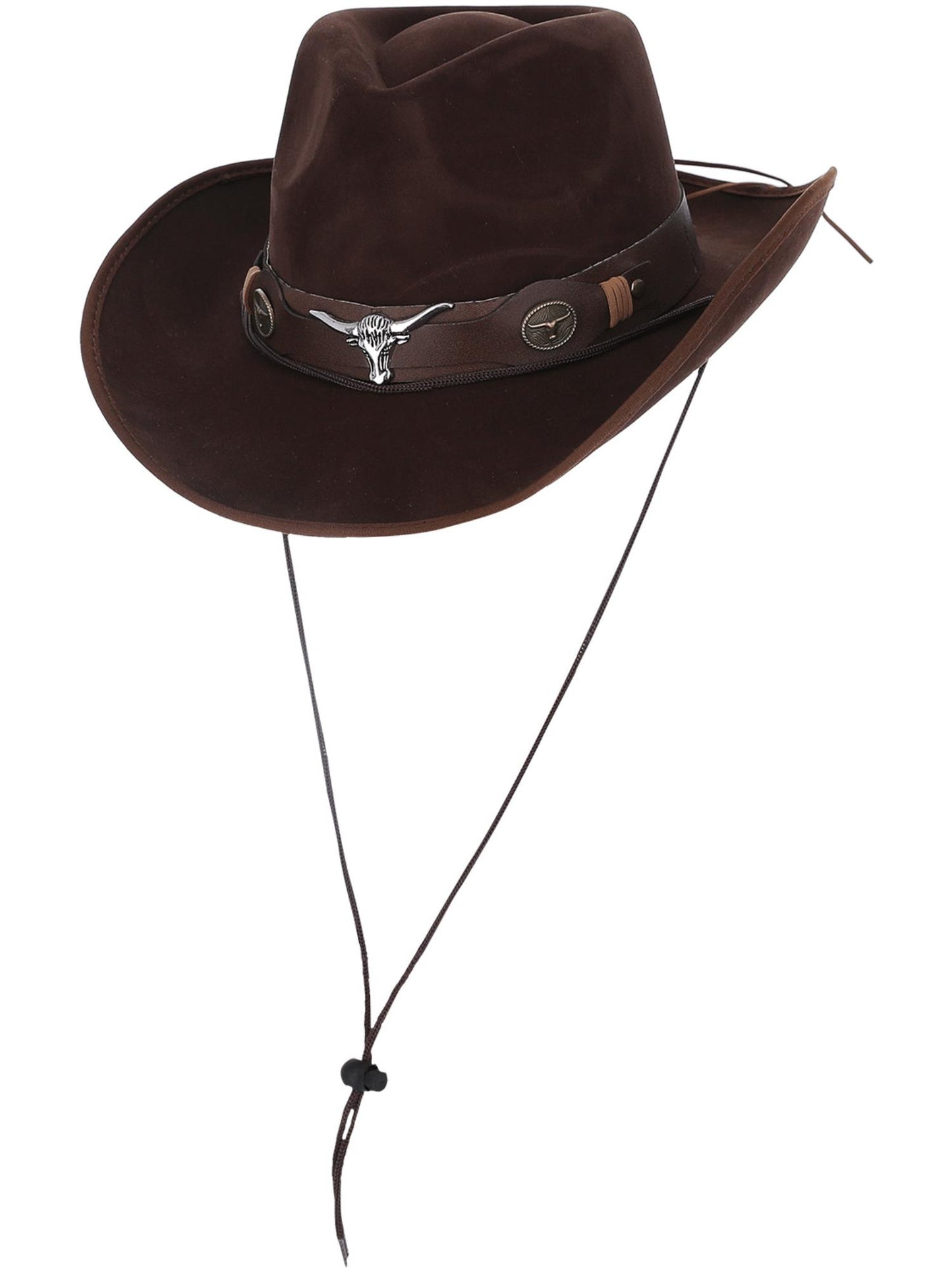Brown Mock Leather Western Cowboy Hat, with Ox Band