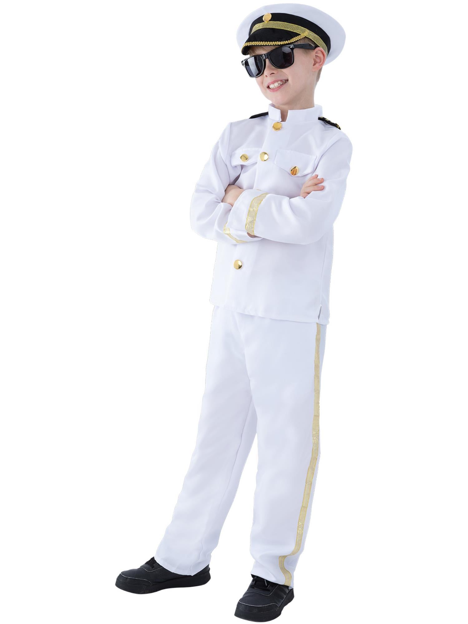 Captain Costume, Child, White, with Jacket, Trousers & Hat
