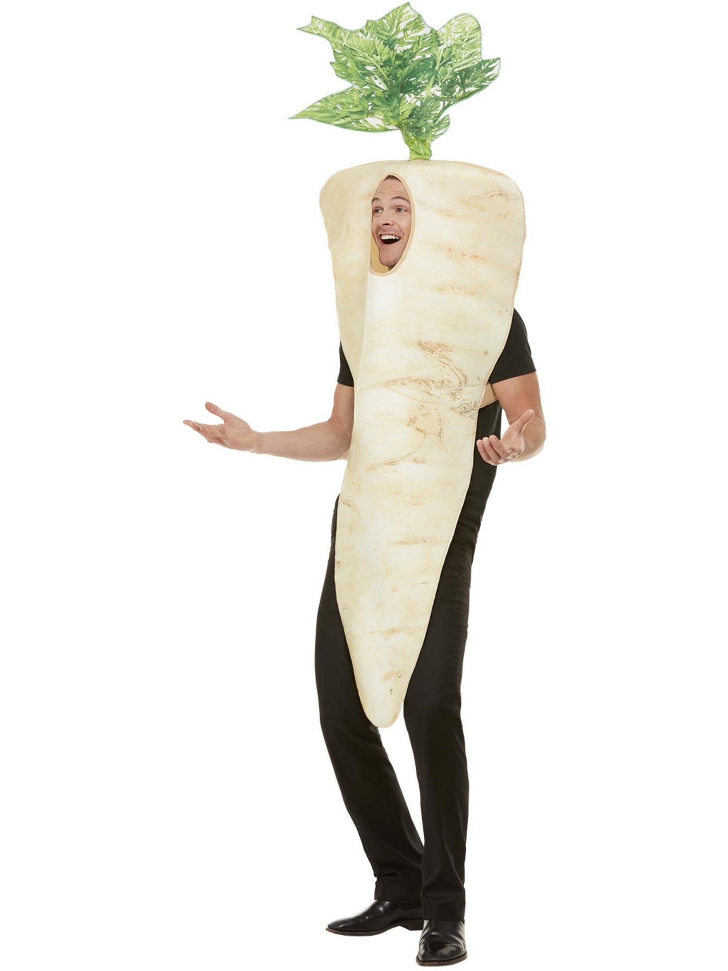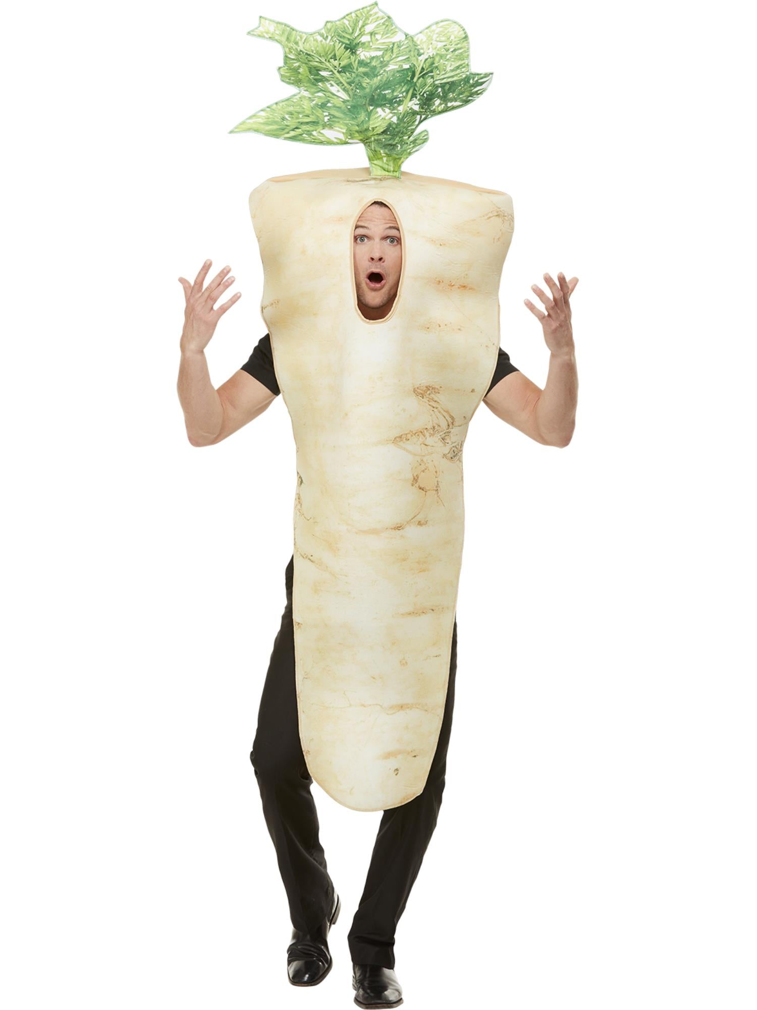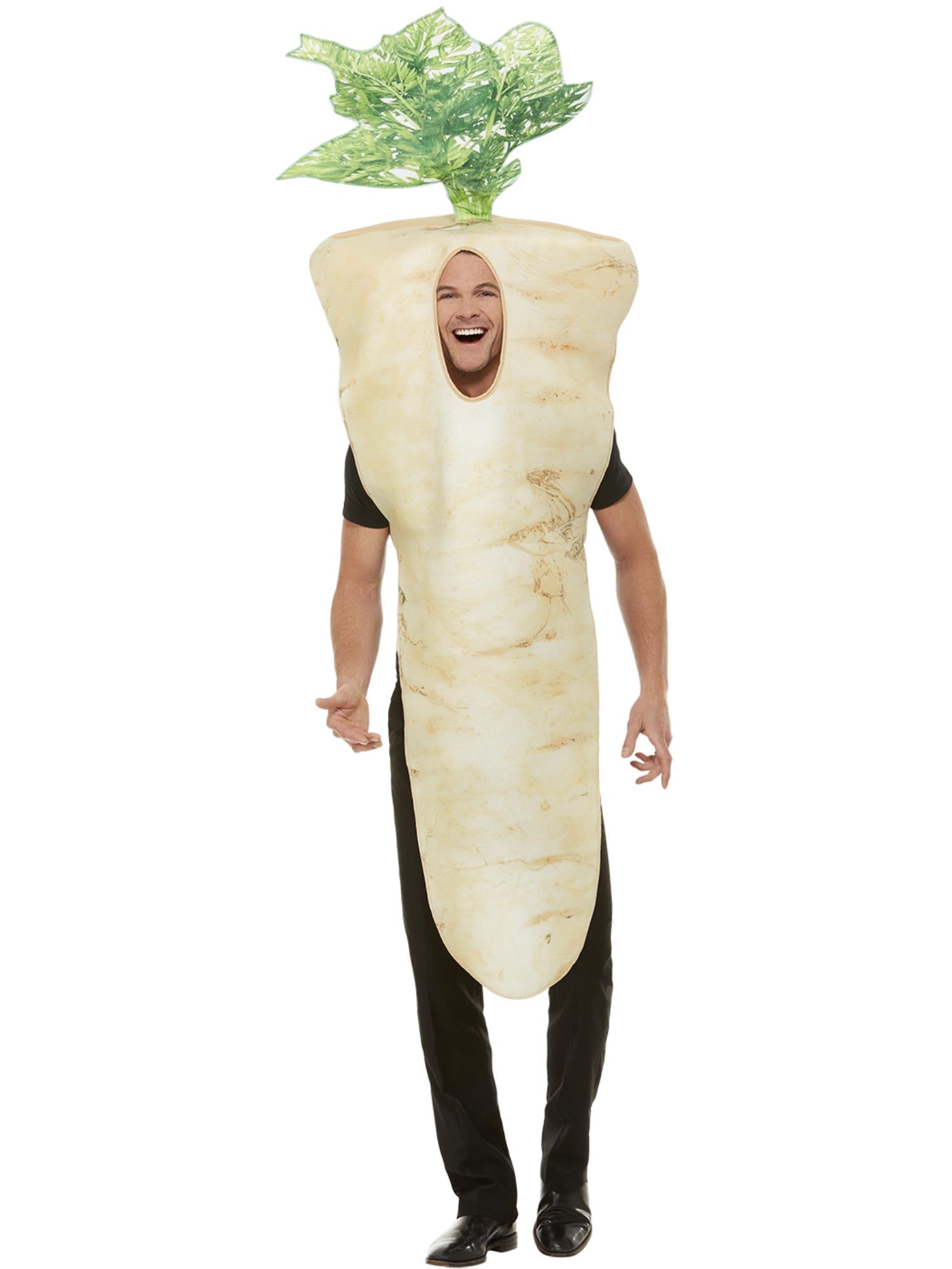 Our Parsnip costume is a funny one piece costume, sized for adults and perfect for this Christmas. No Christmas dinner is complete without a parsnip or two, and this little outfit it just what you need to get into the festive spirit.