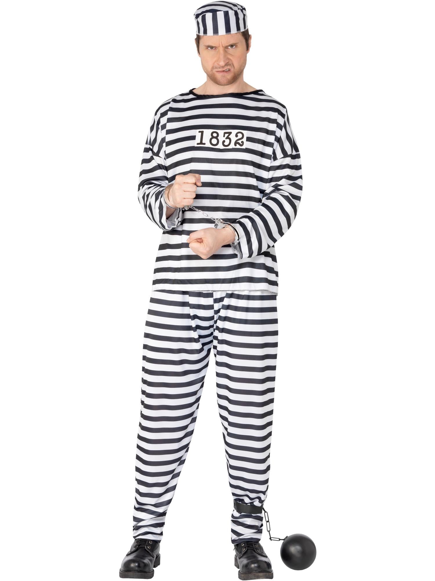Play cops and robbers with the Convict Costume This male fancy dress costume includes a shirt, trousers and hat. Add our handcuffs to complete the look.