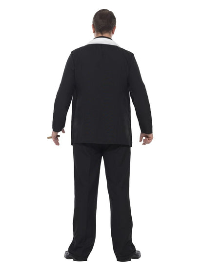 Our Smiffy's Curves Gangster Costume is perfect for the Plus size gentleman. This costume includes a Black Jacket with attached Waist Coat and Mock Shirt, Trousers, Scarf, Flower & Cigar