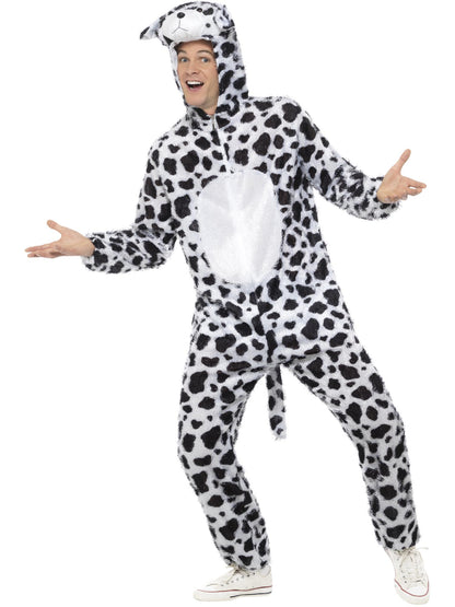Woof woof! Entertain the crowd with the Dalmatian Costume. This fun and fury fancy dress costume is perfect for a party and includes a jumpsuit with hood. It's ideal for men.