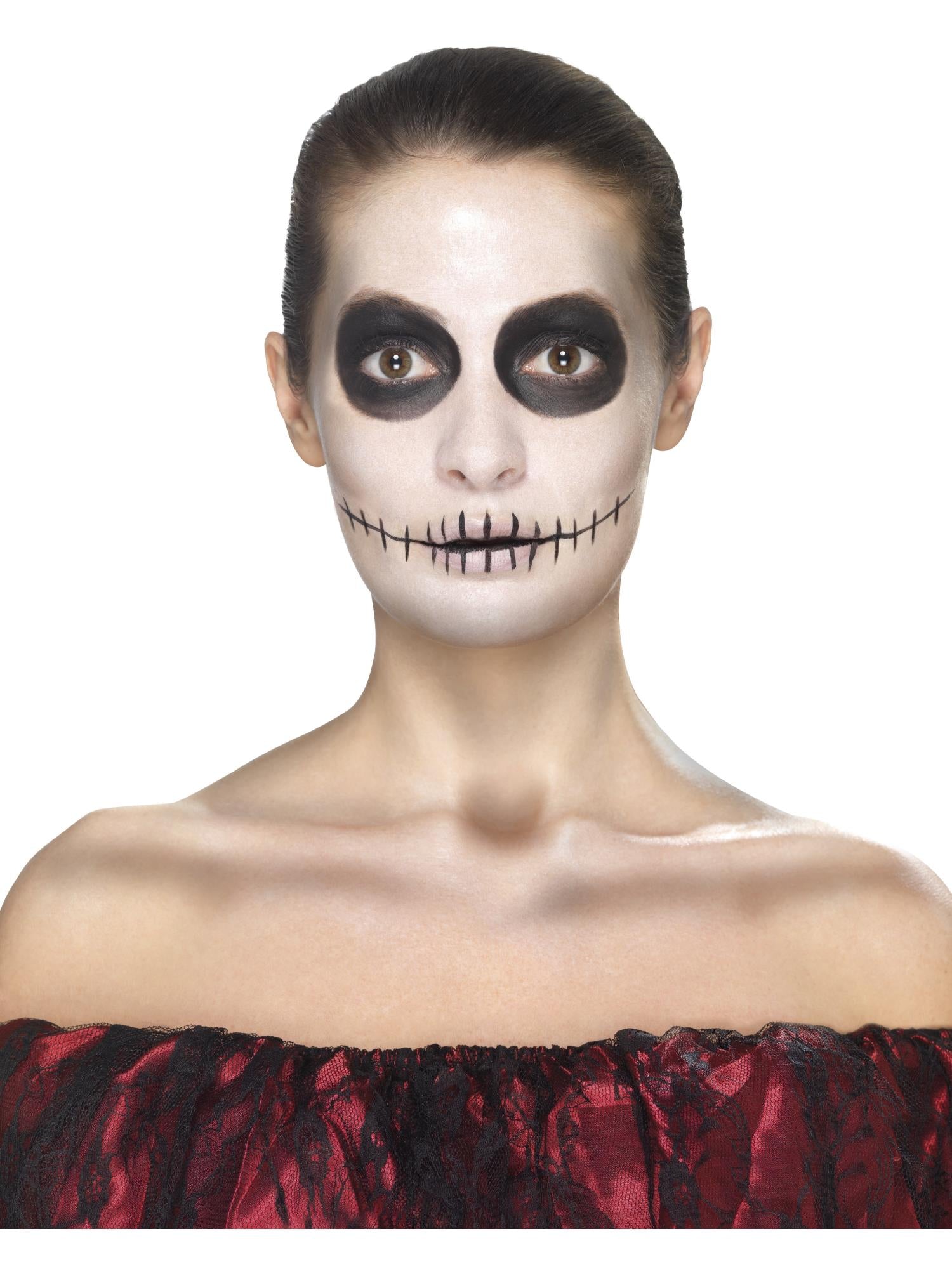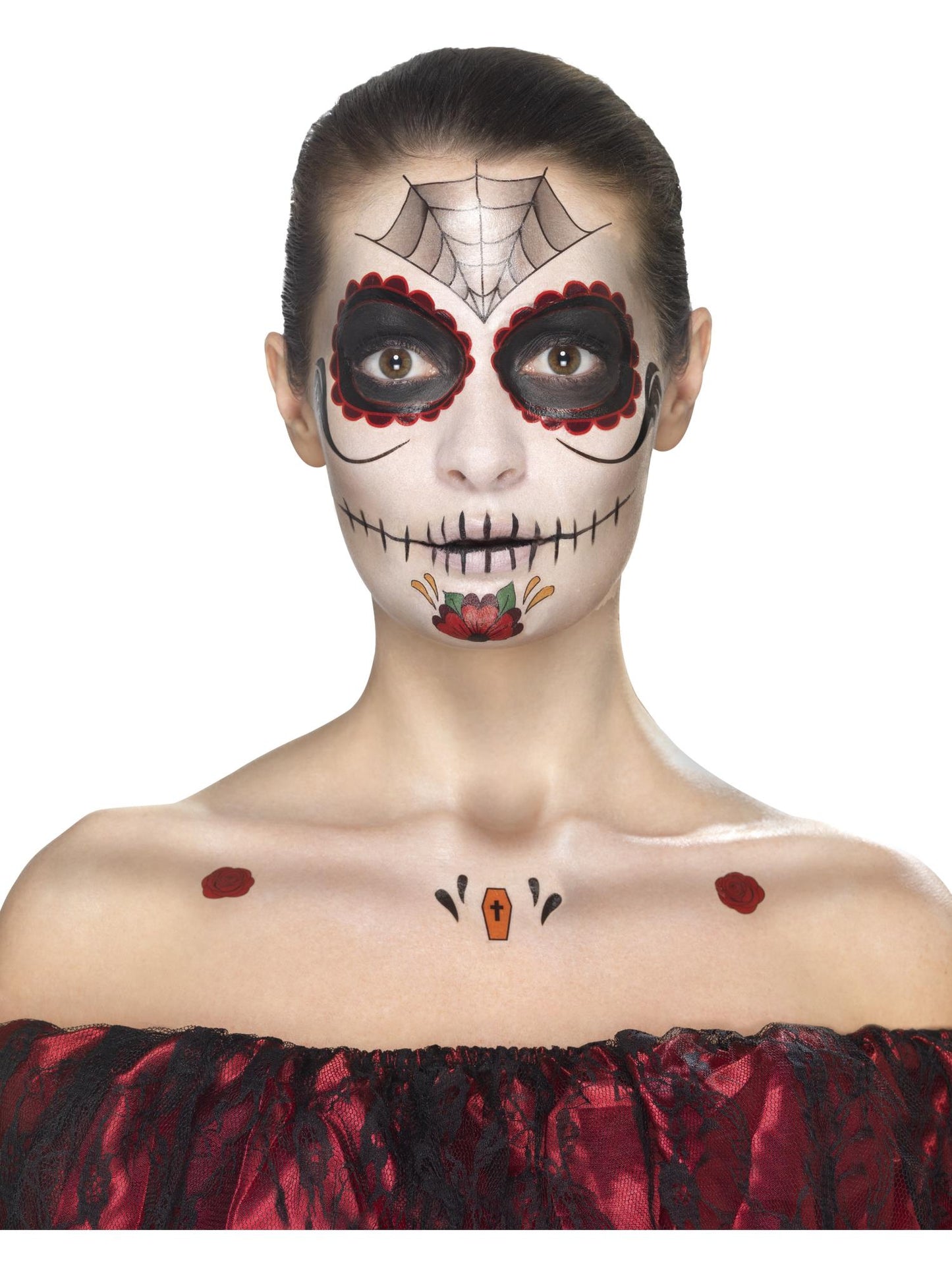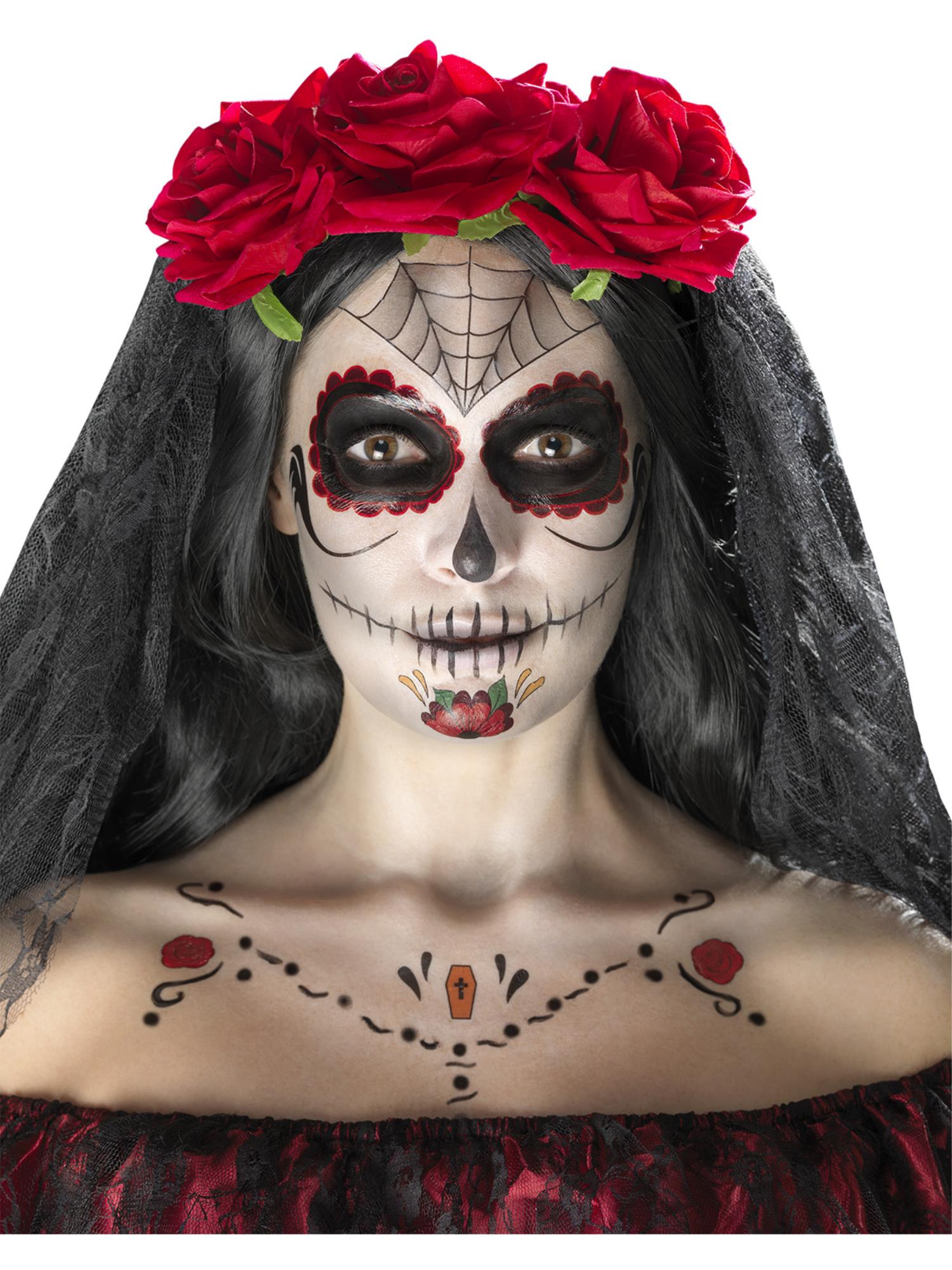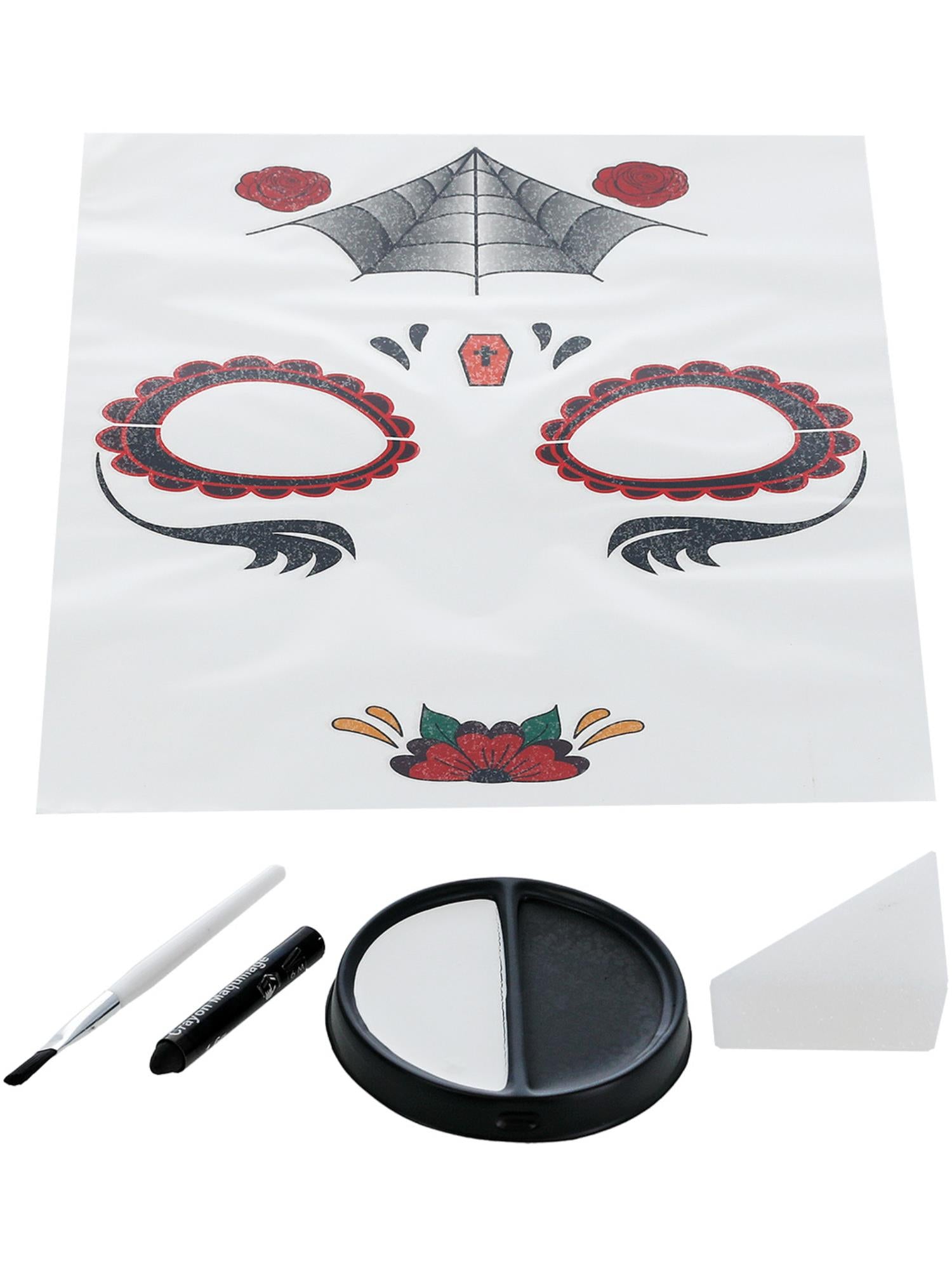 Day of the Dead Face Tattoo Transfers Kit, Aqua, Red & Black, Facepaints, Crayon & Applicators.