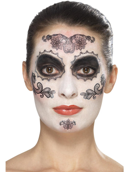 Day of the Dead Glamour Make-Up Kit,Aqua, with, Black, Transfers, Face Paint, Lashes, Jewels & Applicator