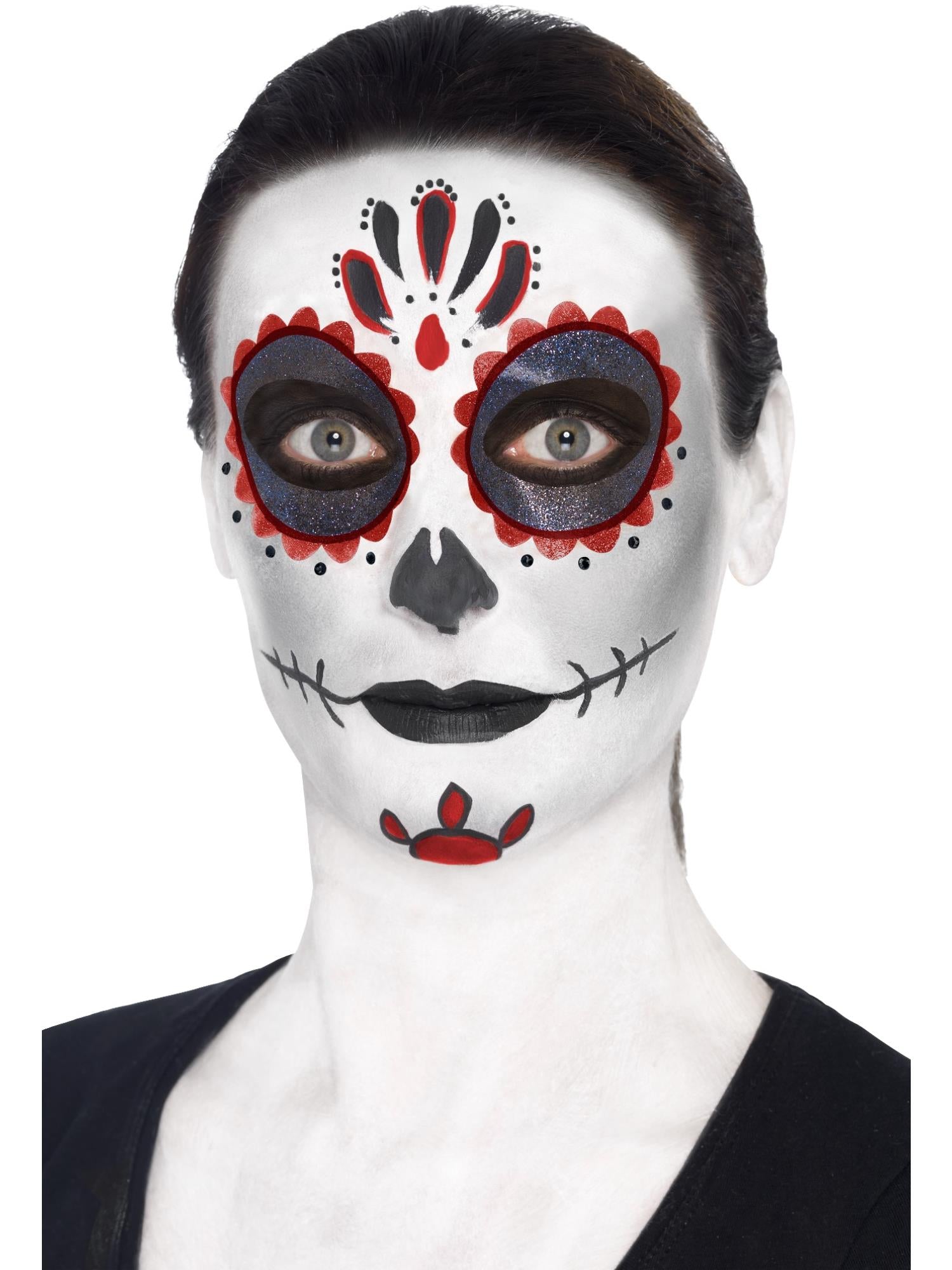 Day of the Dead Make-Up Kit, with Face Paints, Face Tattoo, Gem Stickers, Crayon and Applicators