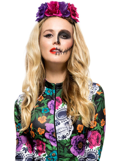 Day of the Dead Rose Headband, Multi-Coloured. Product code: 52171