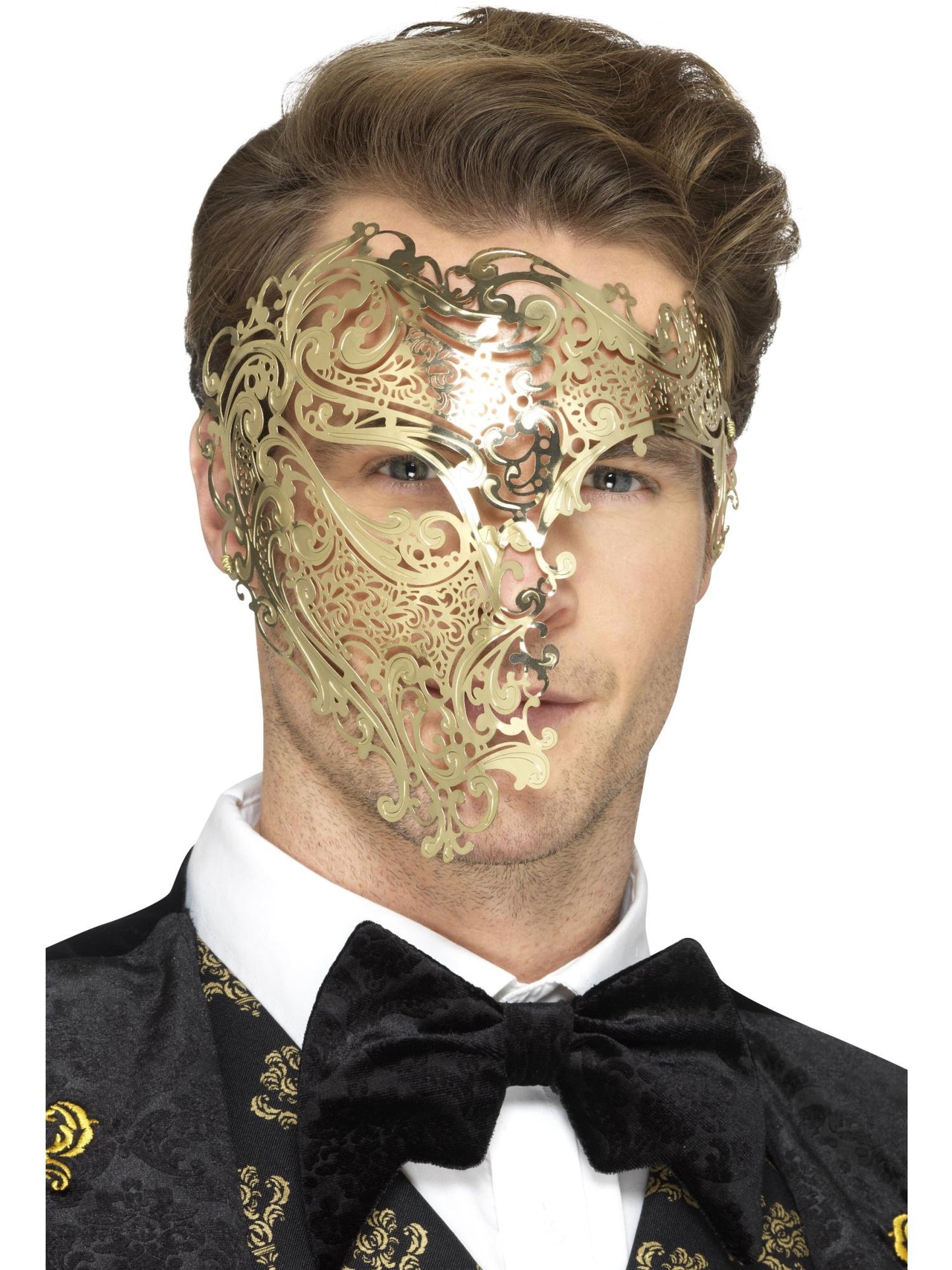 Deluxe Metal Filigree Phantom Mask, Gold.