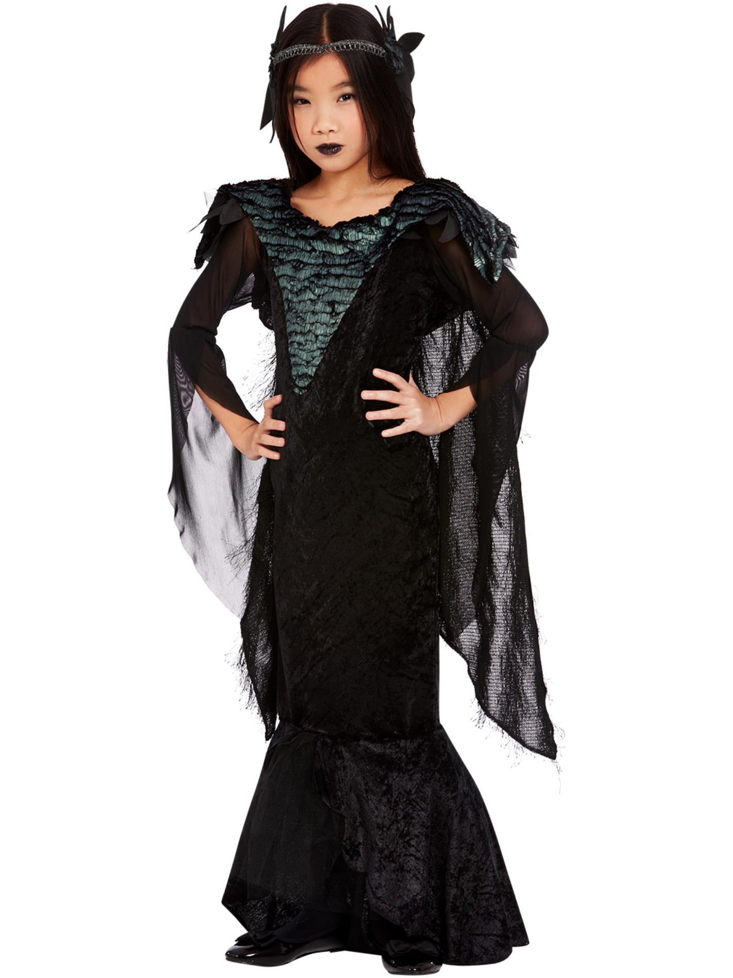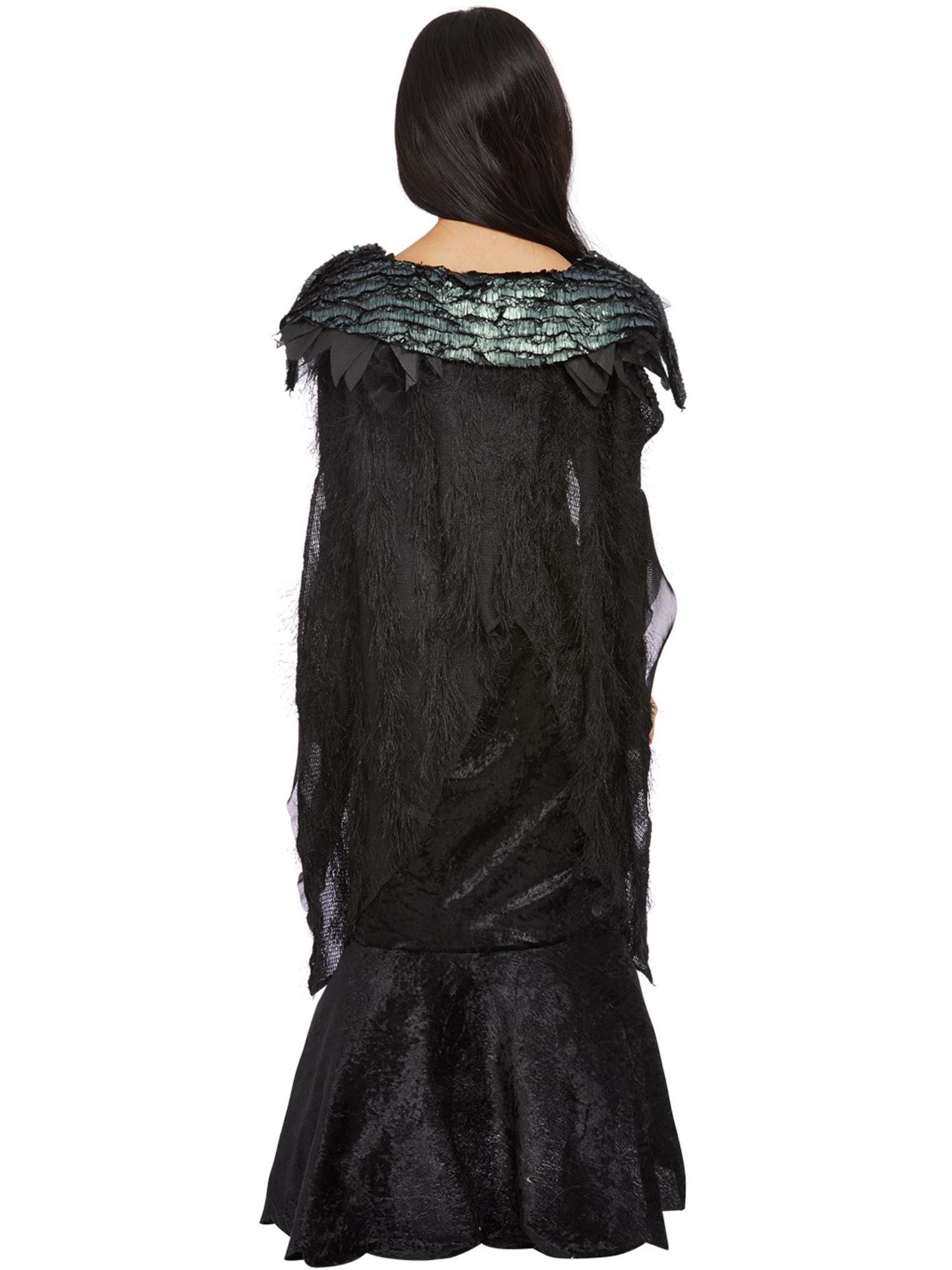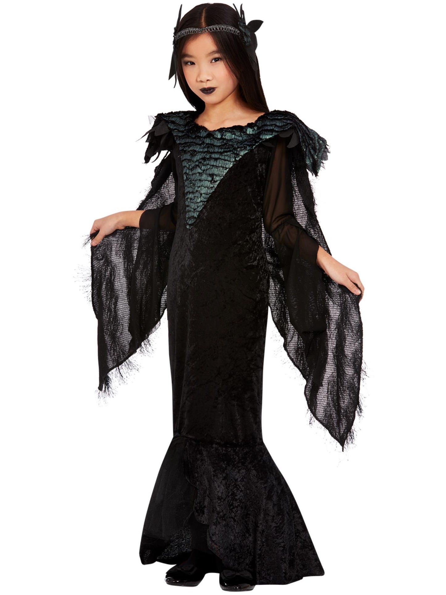 Deluxe Raven Princess Costume, Black, with Dress, Cape, and Headdress.