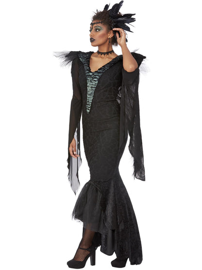 Deluxe Raven Queen Costume, Black, Dress, Cape & Headdress
