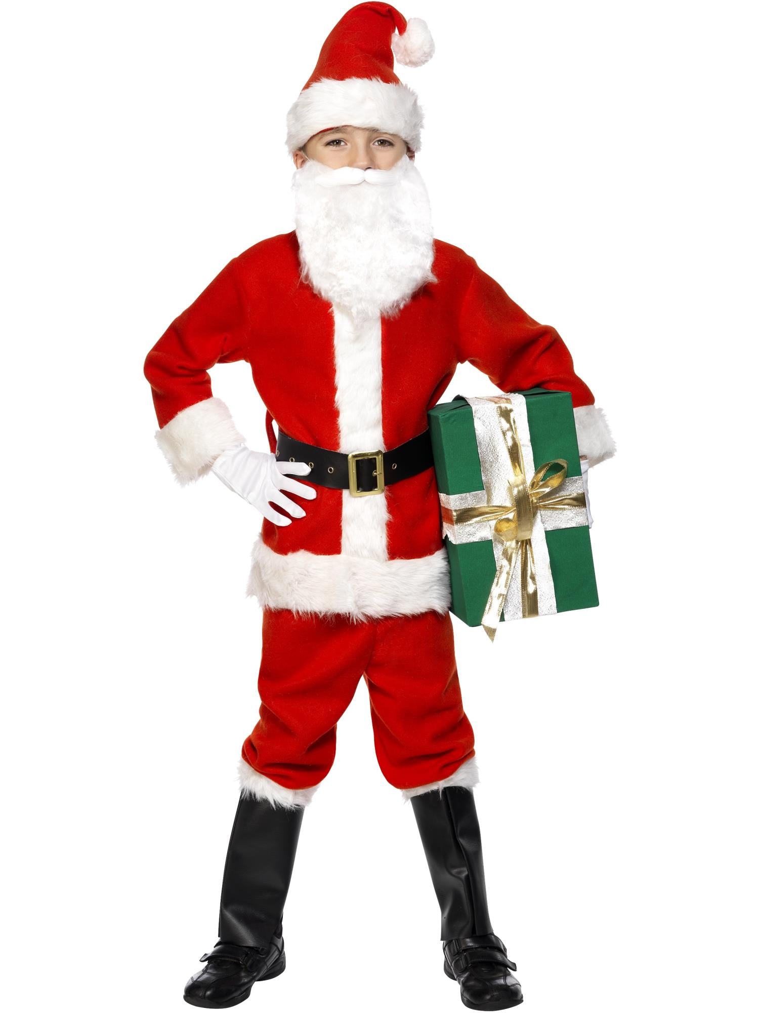 Ho ho ho! Kids can spread the Christmas cheer with the Santa Costume. This kids Christmas fancy dress costume includes a jacket, trousers, belt, hat, gloves, bootcovers and beard.