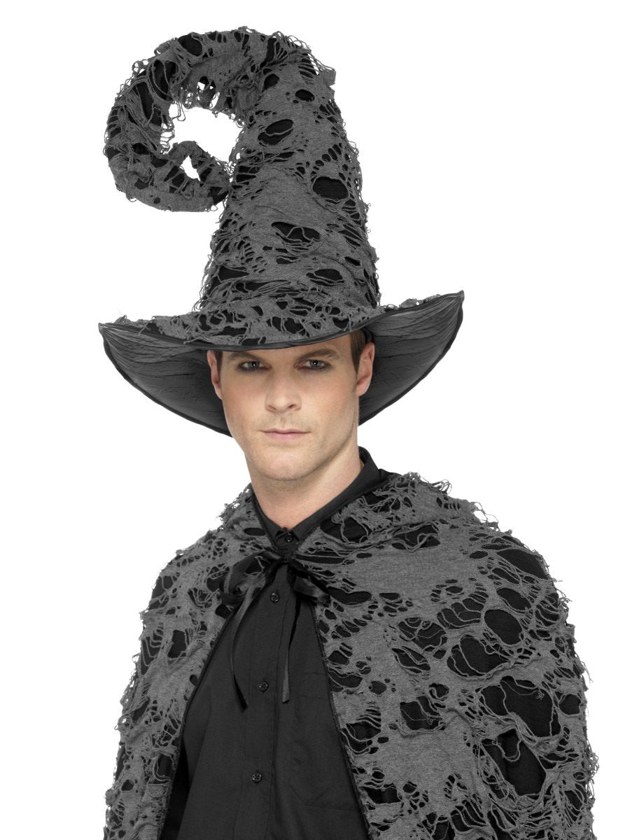 Deluxe Spell Caster Hat, Grey, Distressed, Tall & Twisted, Unisex