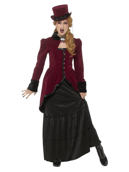 Deluxe Victorian Vampiress Costume, Burgundy, with Jacket, Skirt & Brooch
