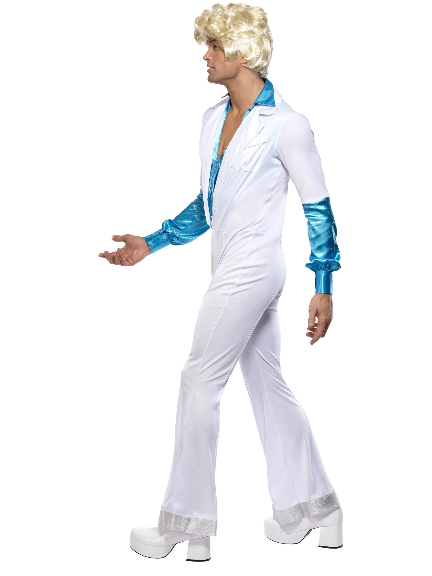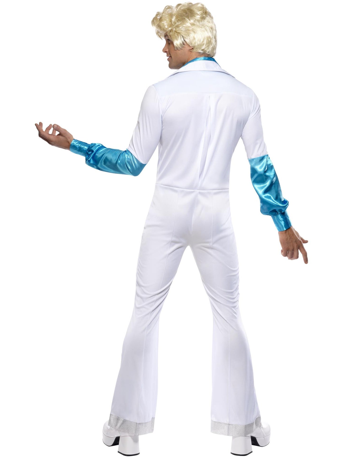 Disco Man Costume, All in One, White, Jumpsuit with Attached Shirt, 1970s Style