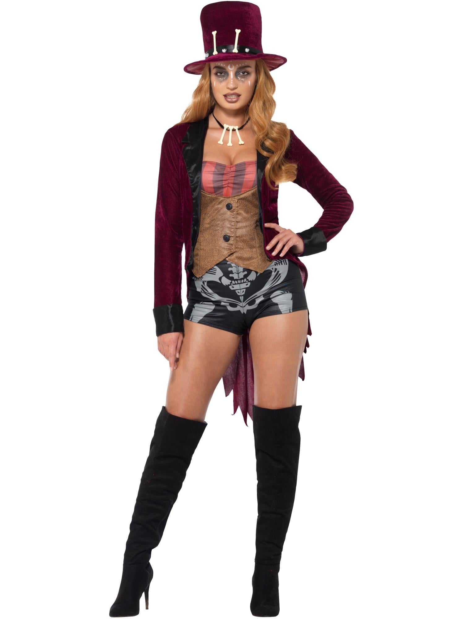 Fever Voodoo Costume, Black & Red, with Jacket, Top, Shorts, Hat & Necklace.