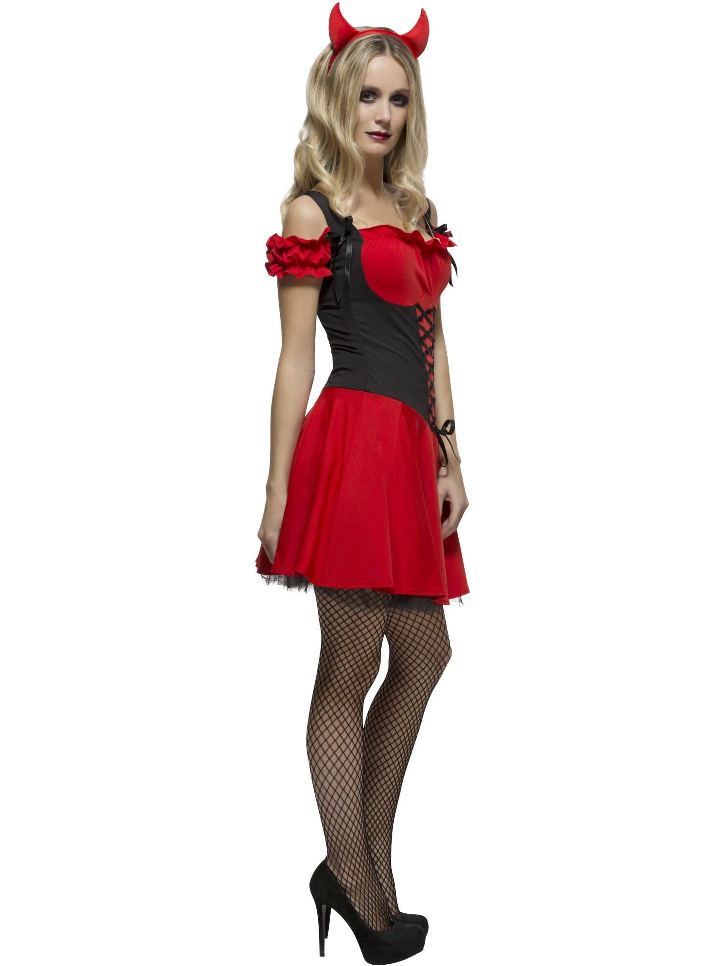Fever Wicked Devil Costume, Red, with Dress, Attached Underskirt and Horns