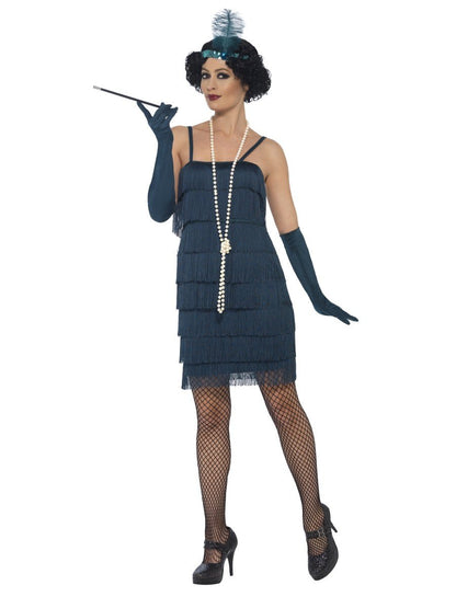 Flapper Costume, Teal Green, with Short Dress, Headband & Gloves