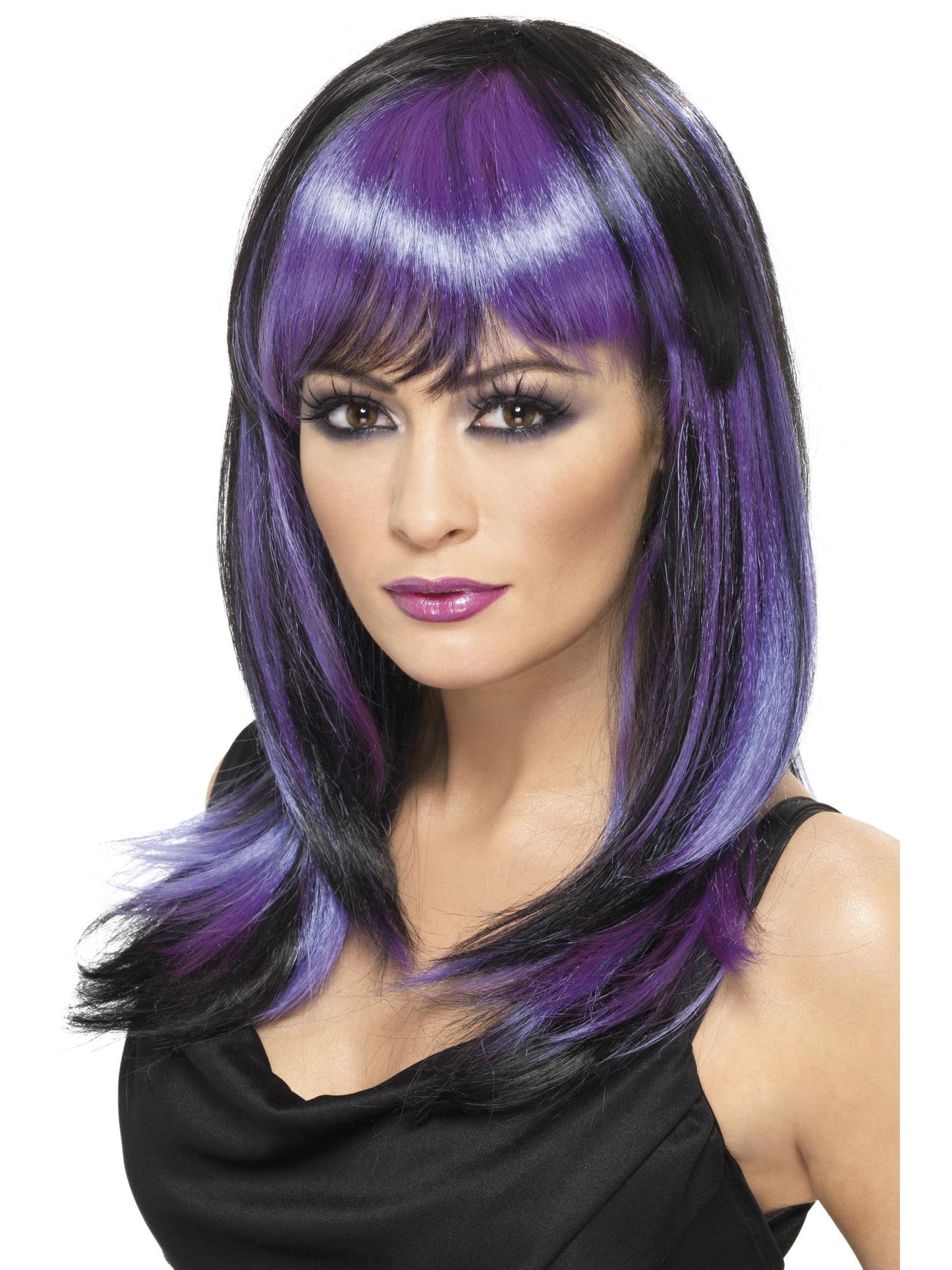 Glamour Witch Wig, Black & Purple, Long with Fringe