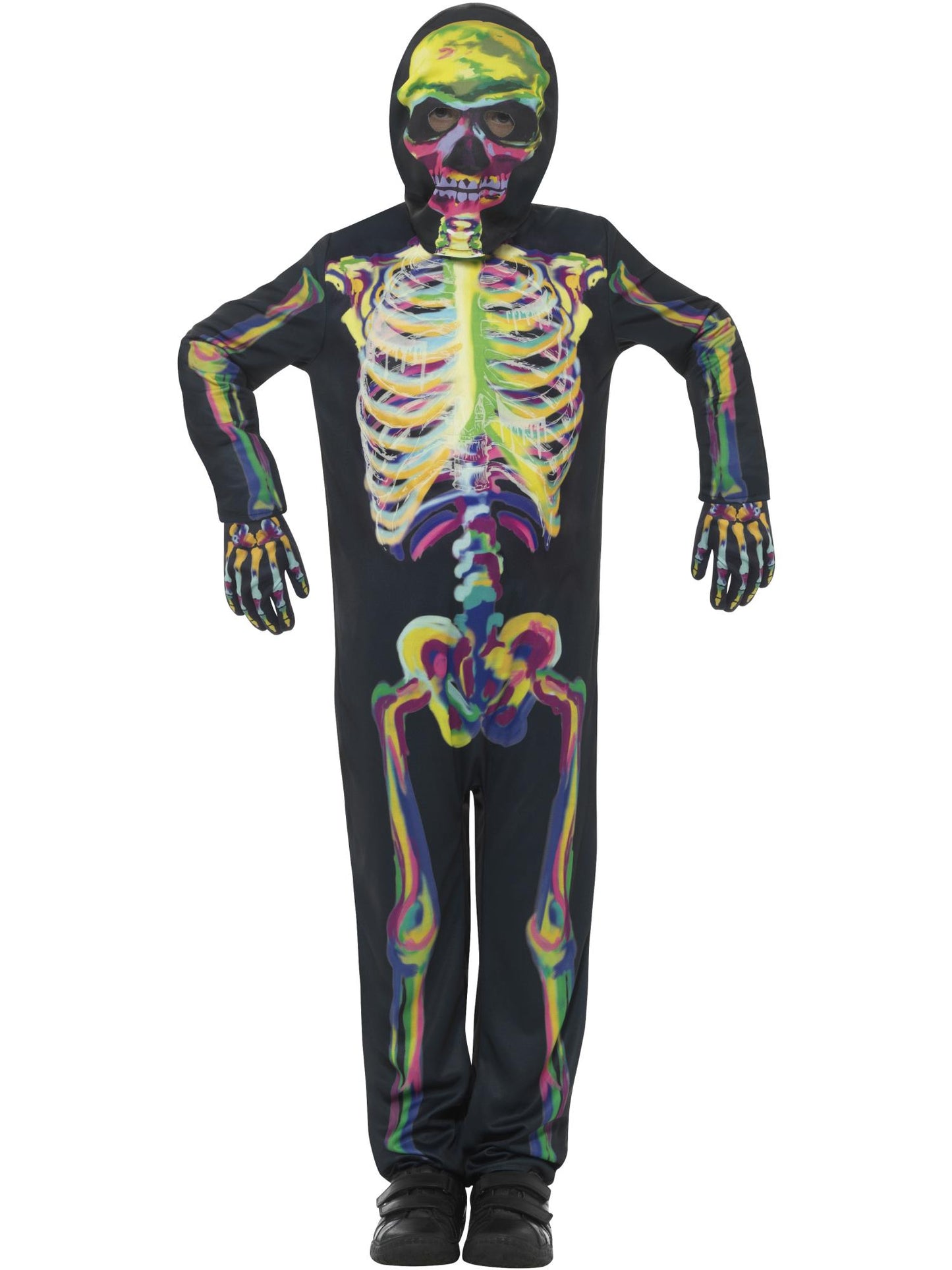Glow in the Dark Skeleton Costume, Multi-Coloured, with Bodysuit, Mask & Gloves.
