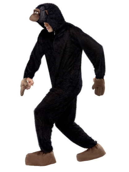 Send an ambulance! A riot squad! this kong has escaped! this snazzy adult men's gorilla fancy dress costume wil have you transformed from head to toe in an instant! the costume comes complete in black with a full faux fur bodysuit which has a zip along the chest, an attached hood which has a gorilla face on the front. Also included are attached gorilla hands and feet which are in brown. This is fantastic for bucks nights!