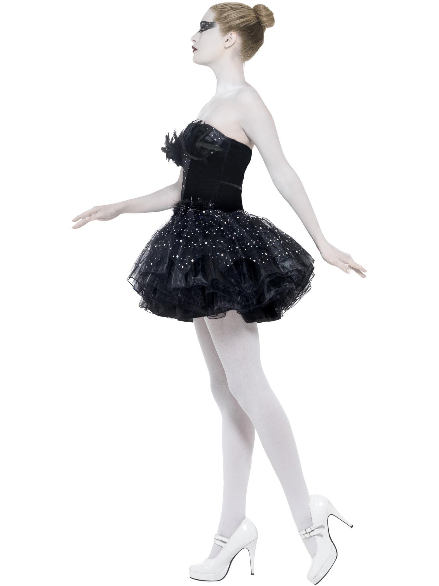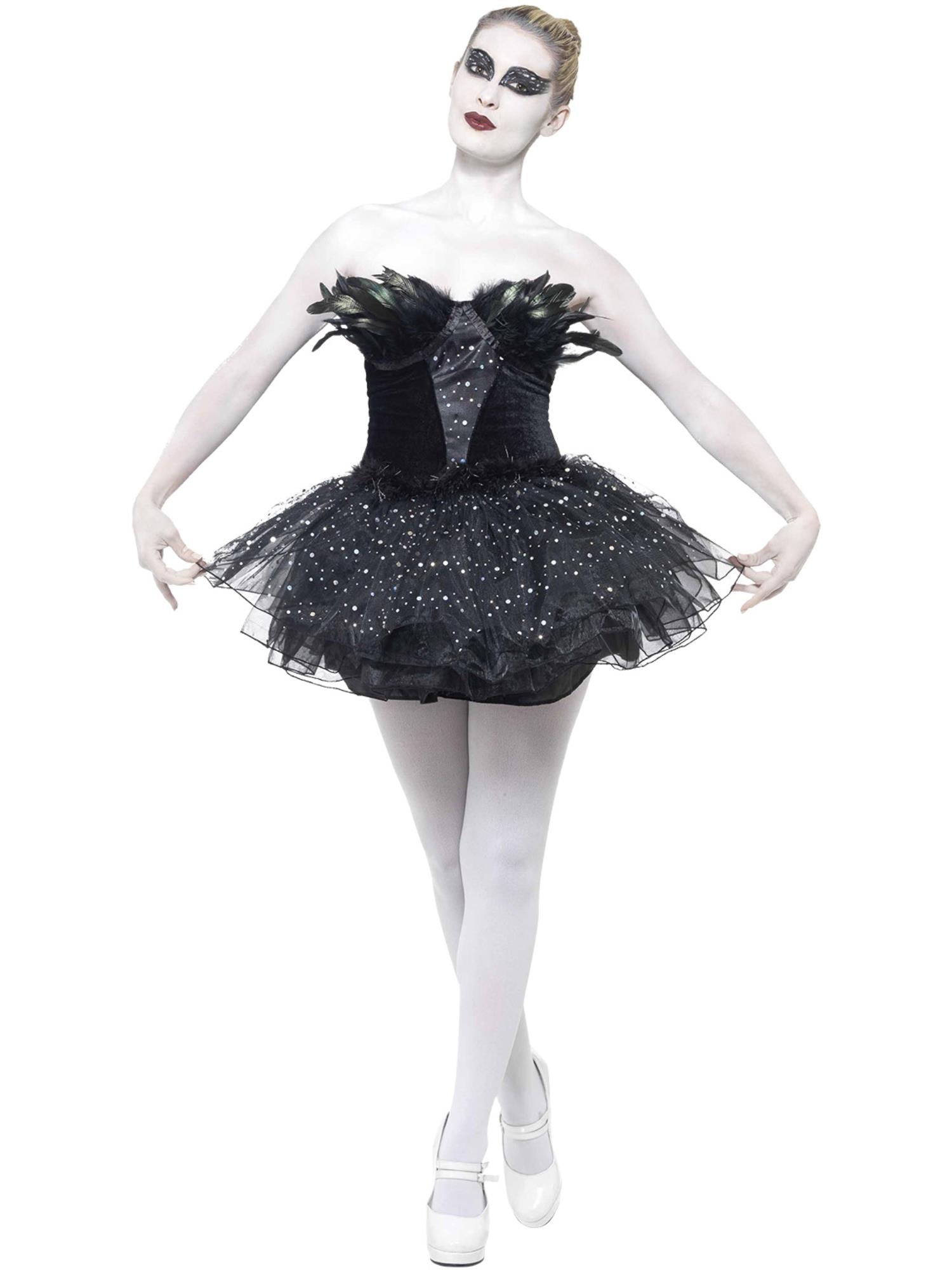 Put on a hauntingly beautiful performance in the Gothic Swan Masquerade Costume. This alternative Halloween fancy dress costume includes a black dress. Complete the look with the Gothic Swan Eyemask.
