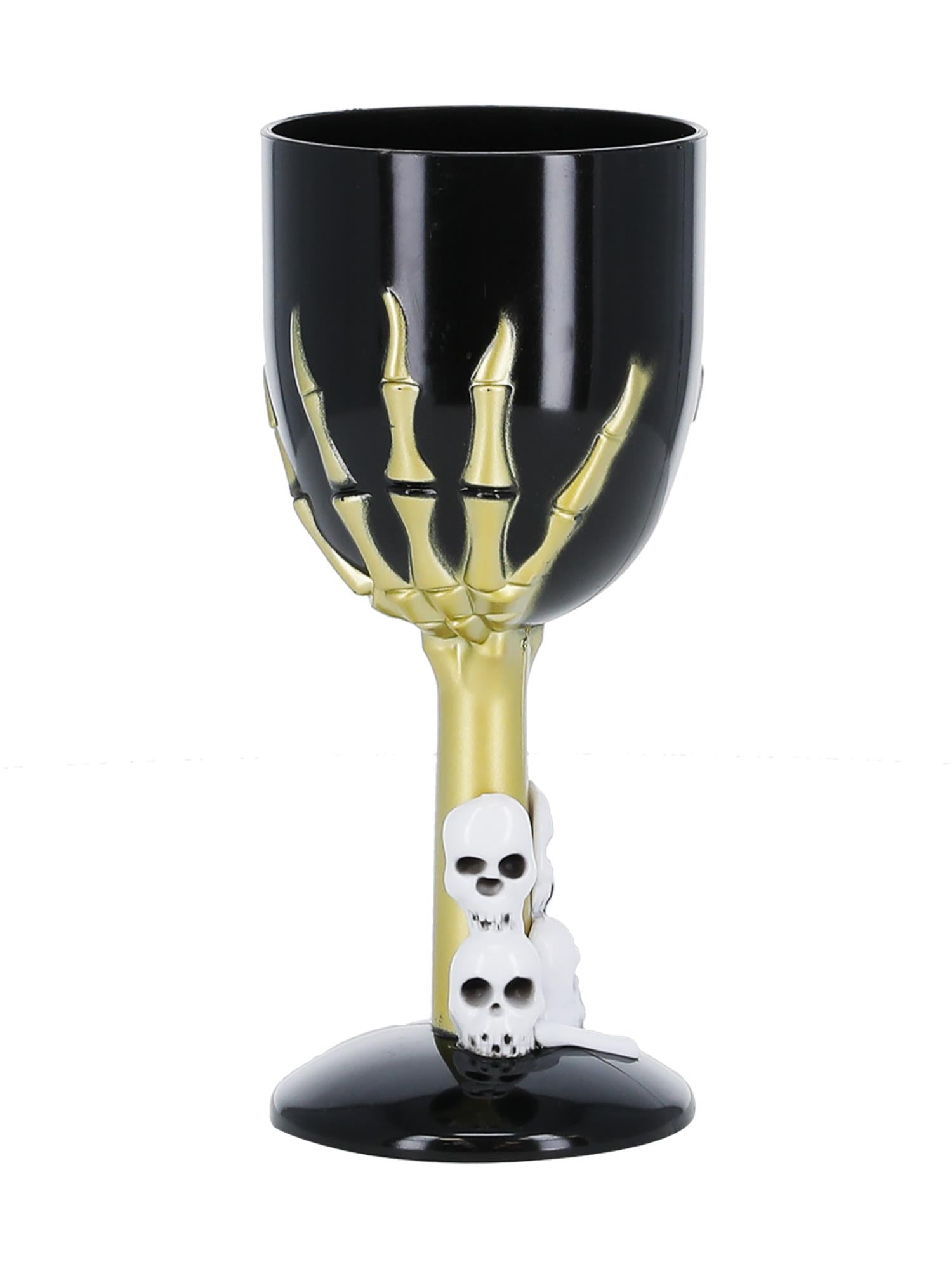 Gothic Wine Glass, Black, with Skeleton Hand Stem