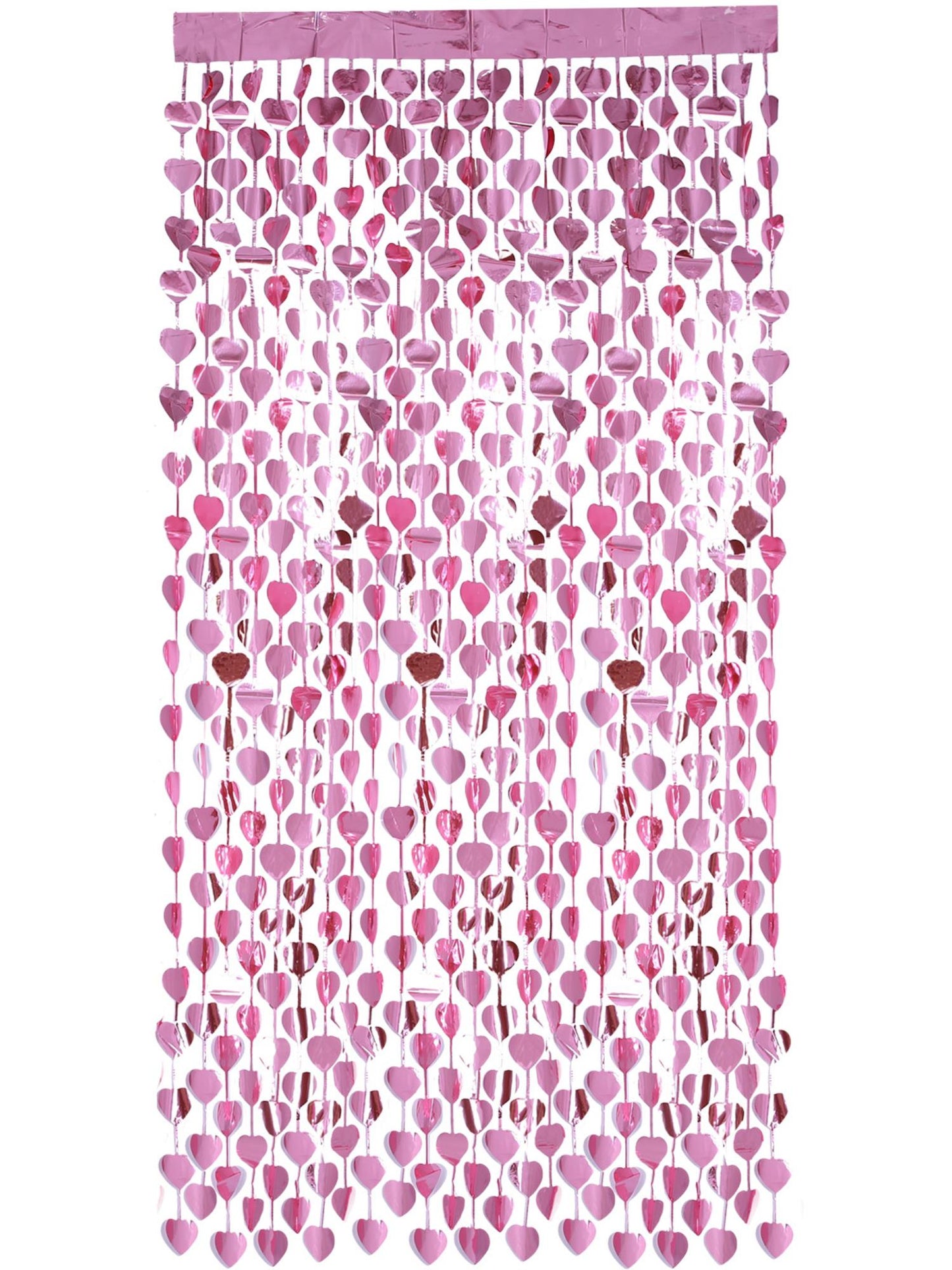 Heart Foil Curtain Backdrop, Pink, 190x91cm/ 74x36in