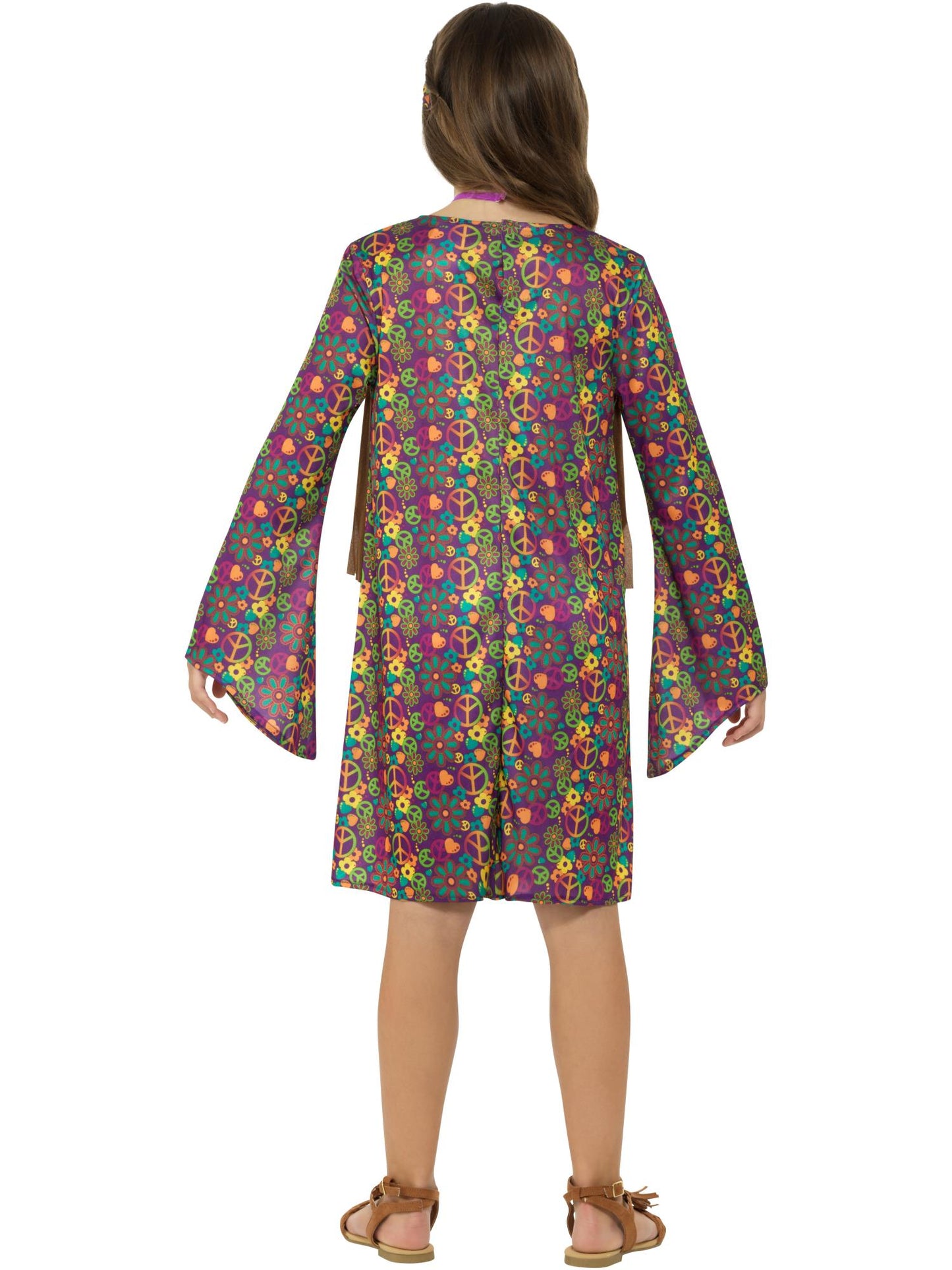Hippie Girl Costume, Multi-Coloured, with Dress, Attached Waistcoat, Headband & Medallion