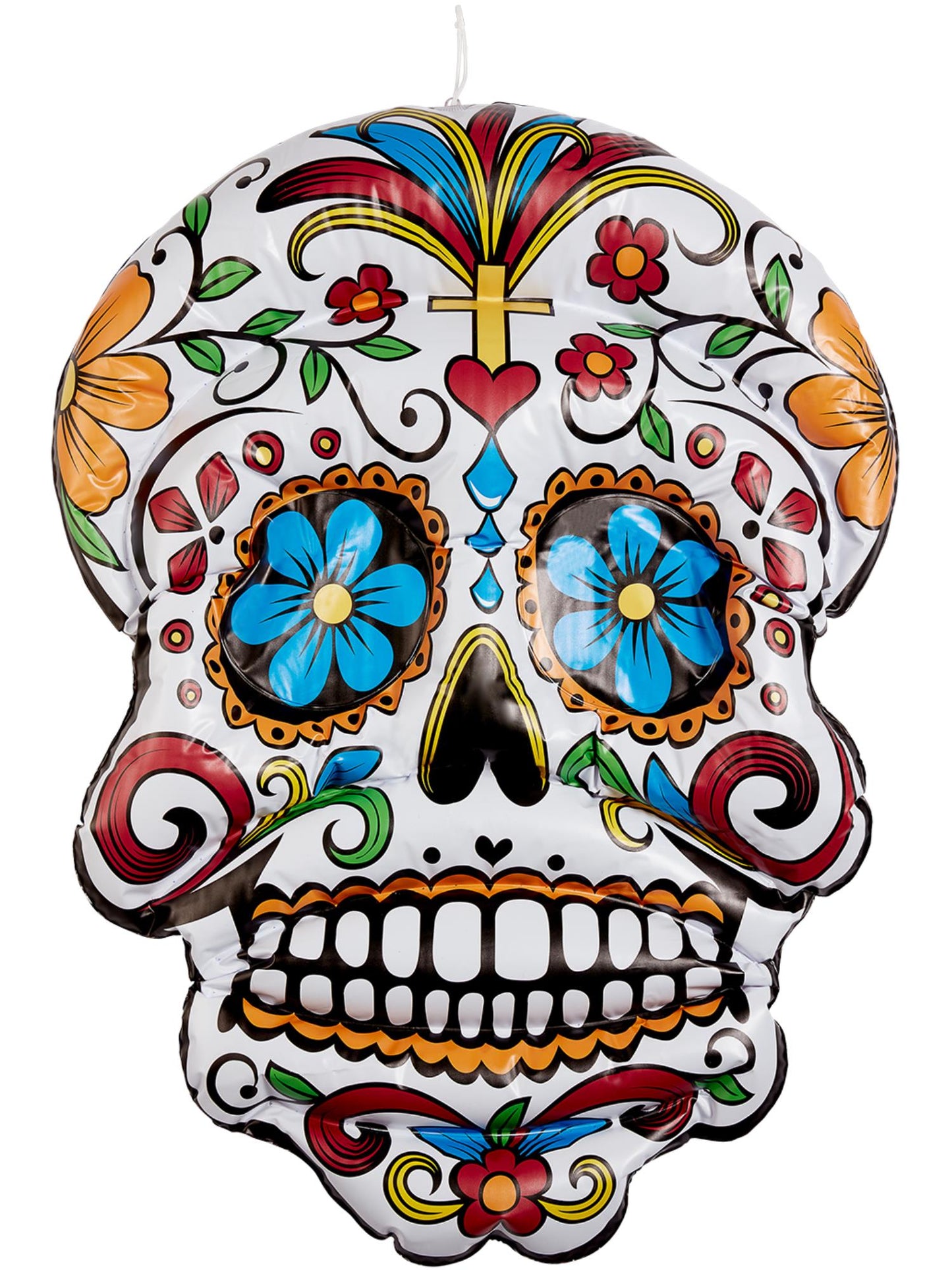 Inflatable Day of the Dead Hanging Skull, White, with Floral Print 100cm/39in. Product code: 57075