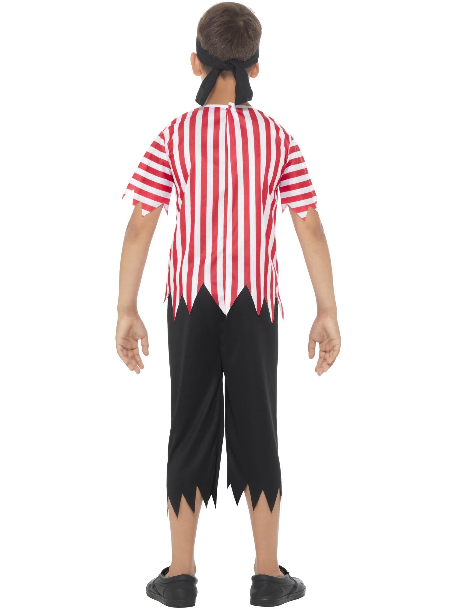 Jolly Pirate Boy Costume, Red & White, with Top, Trousers, Bandana & Eyepatch.