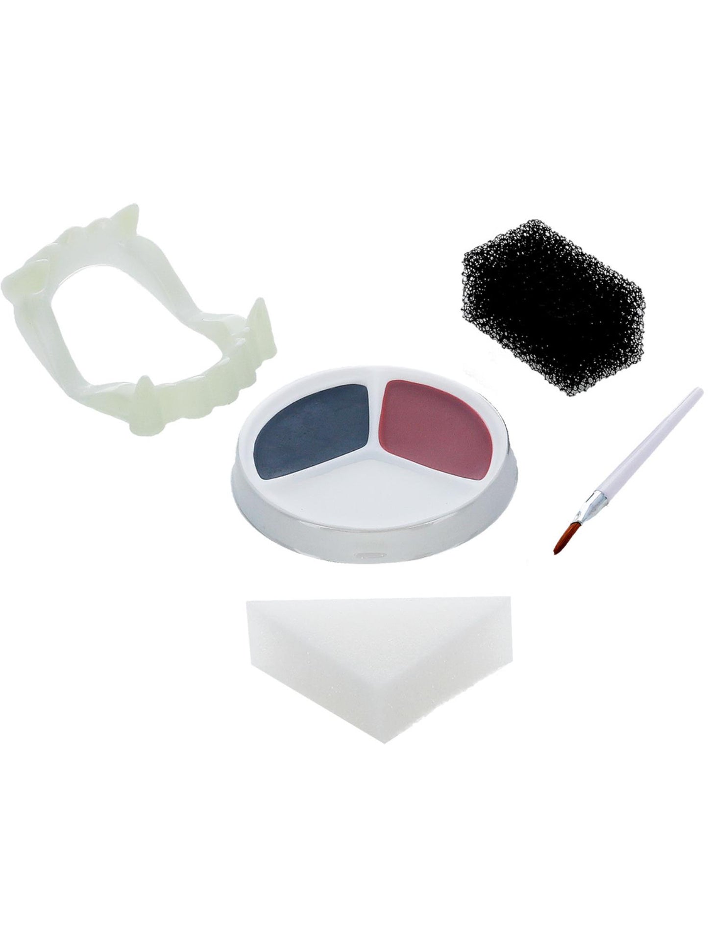 Kids Halloween Vampire Make Up Kit, Aqua, Multi-Coloured, 3 Colours, Fangs, Stipple Sponge, Sponge & Brush.