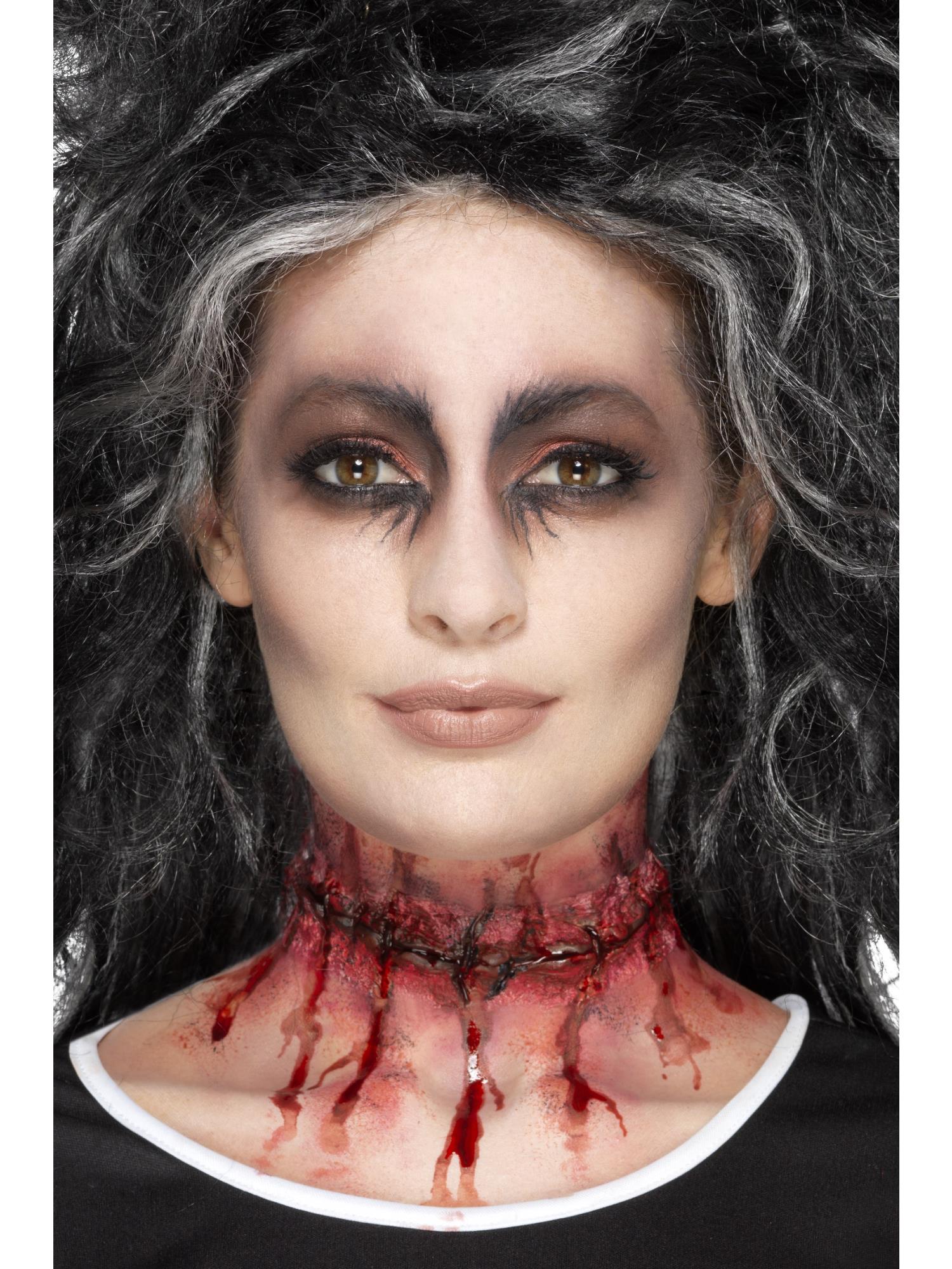 Latex Stitched Neck Scar Prosthetic, Red, with Adhesive.