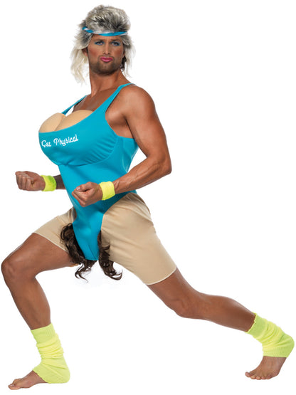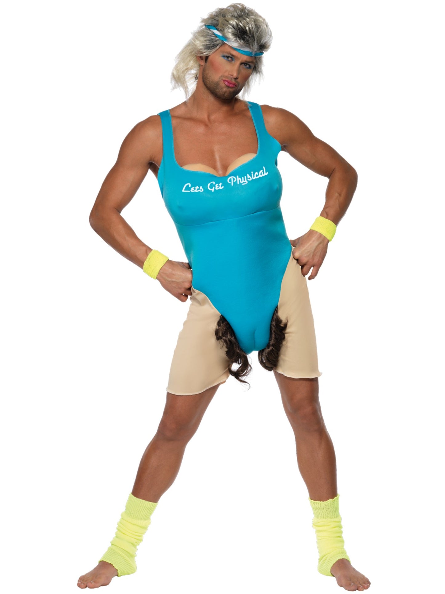 Want to attract attention at the gym? Work out in our Lets Get Physical, Work Out Costume. This male comedy fancy dress costume includes a bodysuit and headband. It's perfect for an 80s party!.