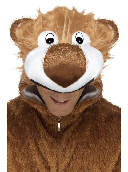 Be the king of the jungle with this super all-in-one adult unisex golden brown and cream fancy dress costume which has a tail, cream stomach and hood with the face and ears of a lion on top. There is also a zip down the front for ease.