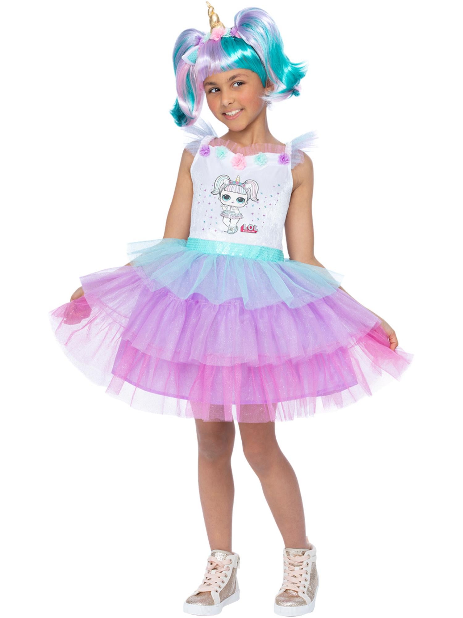 L.O.L Surprise!™ Deluxe Unicorn Costume , Dress & Headband with Pigtails & Fringe