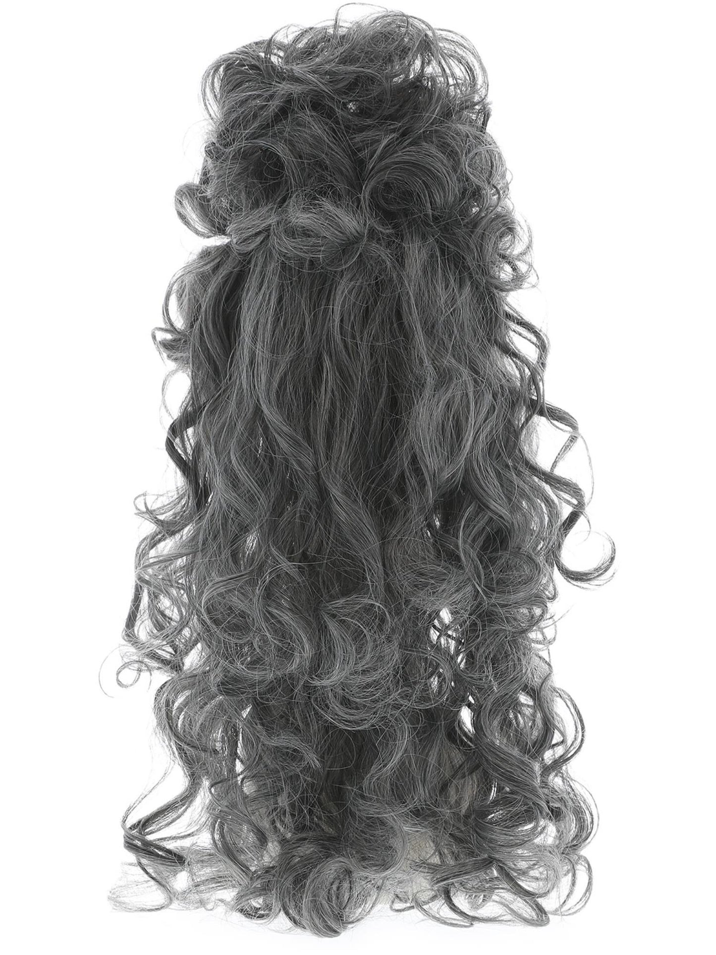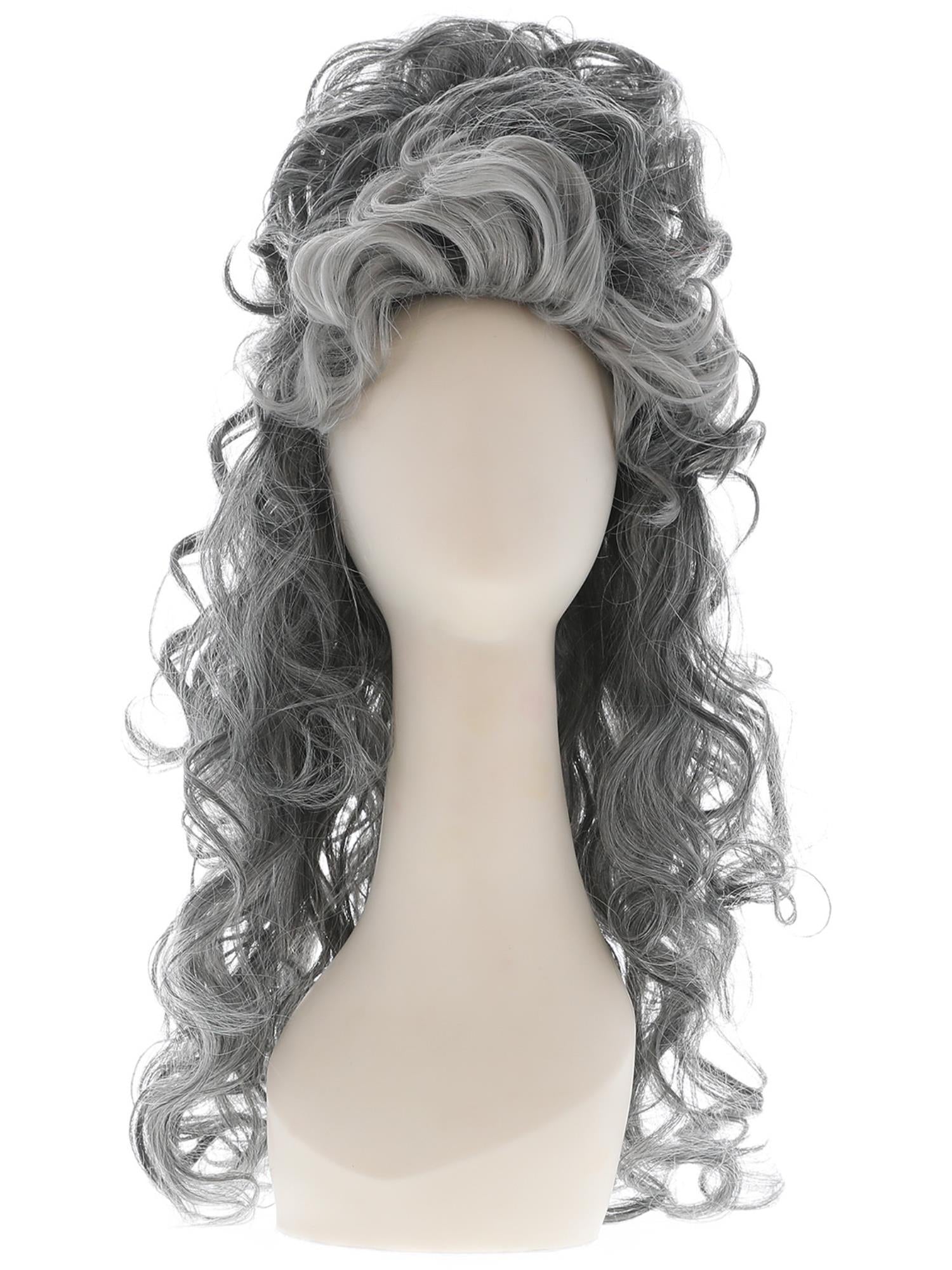 Medeia Witch Beehive Wig, Grey, Long & Curly with Beehive Top