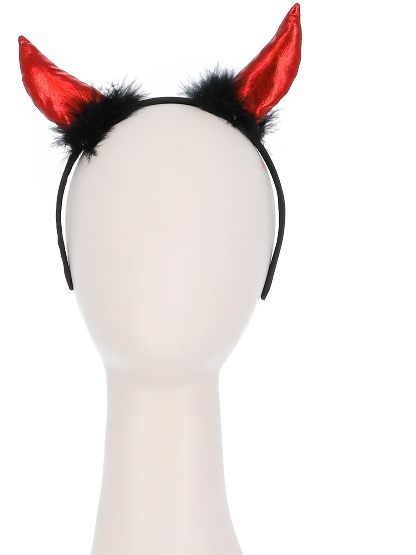 Metallic Devil Horn Headband, Red & Black, with Marabou Feathers.