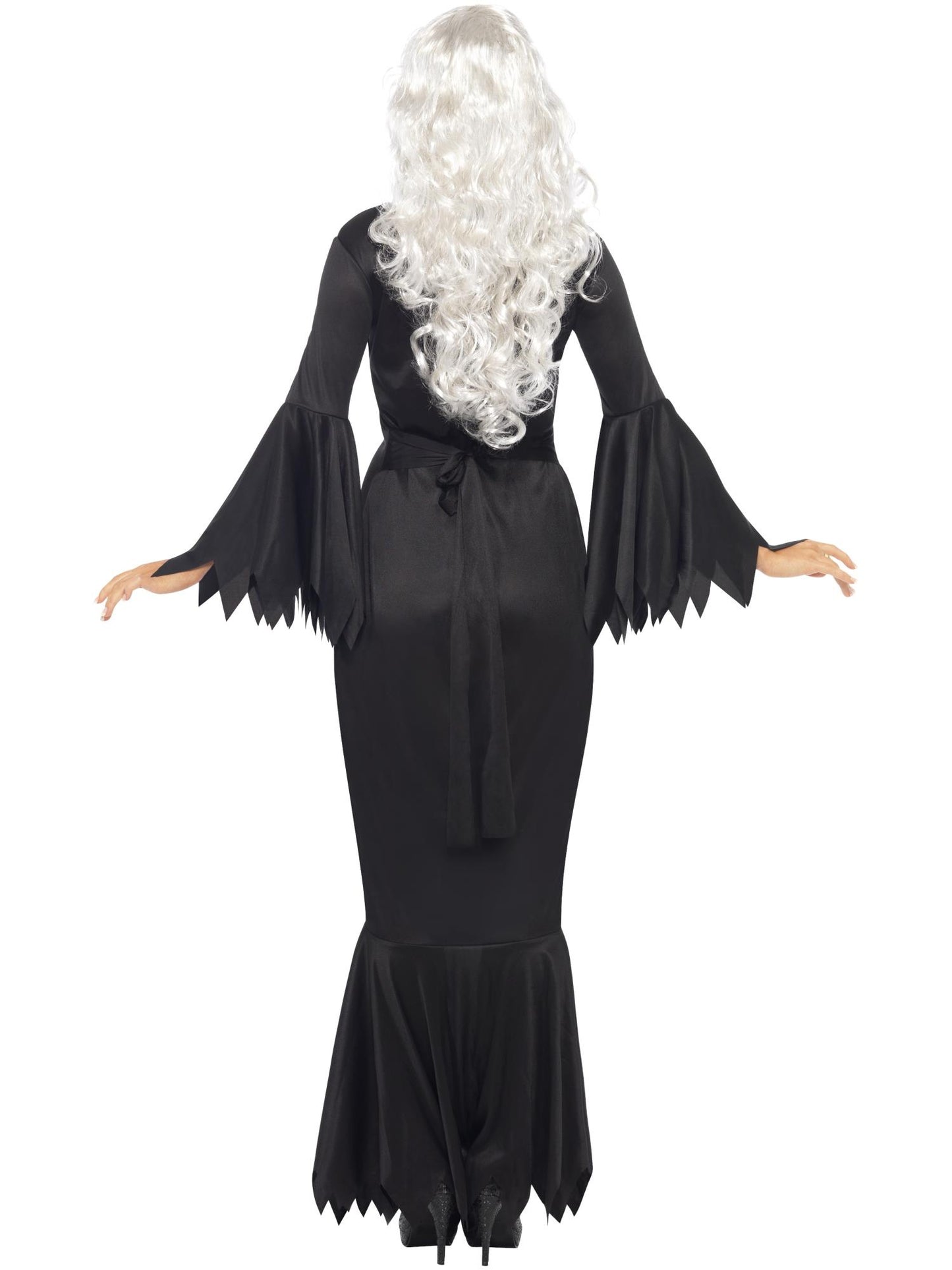 Transform into the Queen of the Night in the Black Adult Female Vampiress Costume! This Halloween outfit comes as a black gown.